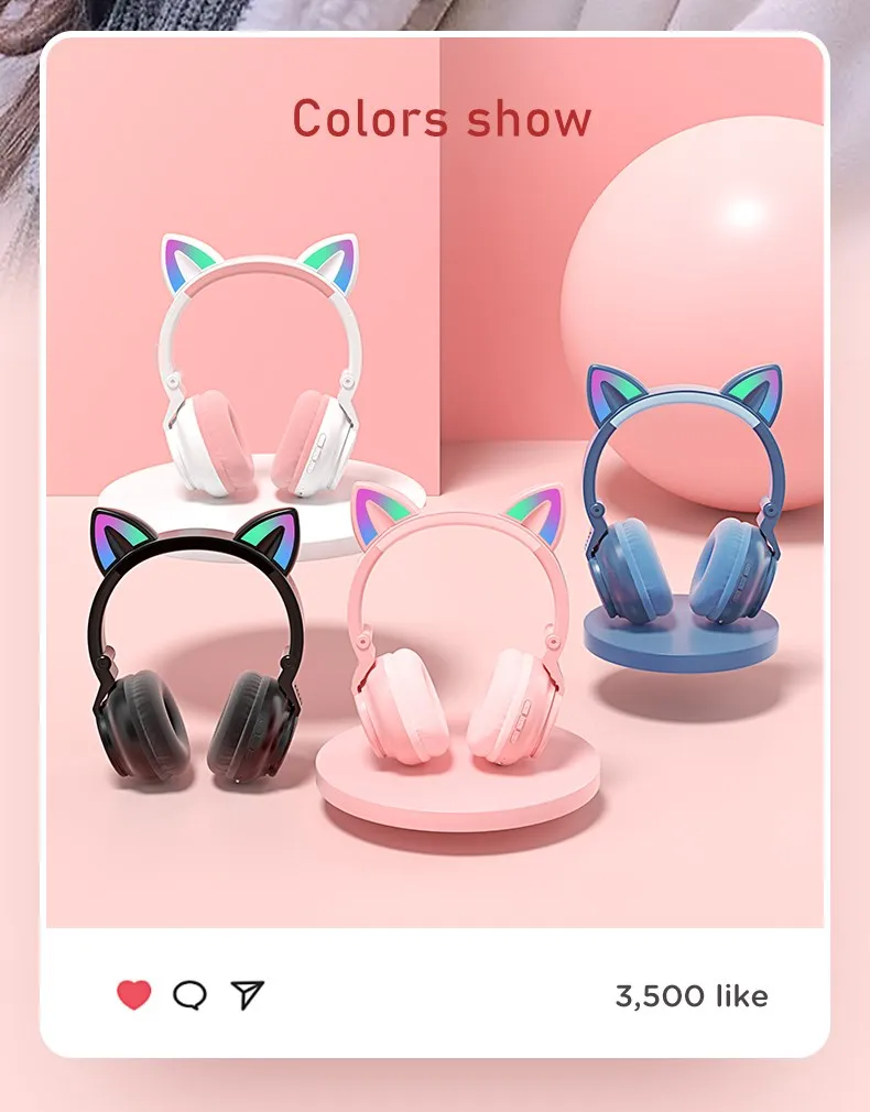 1. Улучшенные цветные наушники Bluetooth EDR с кошачьей лапой