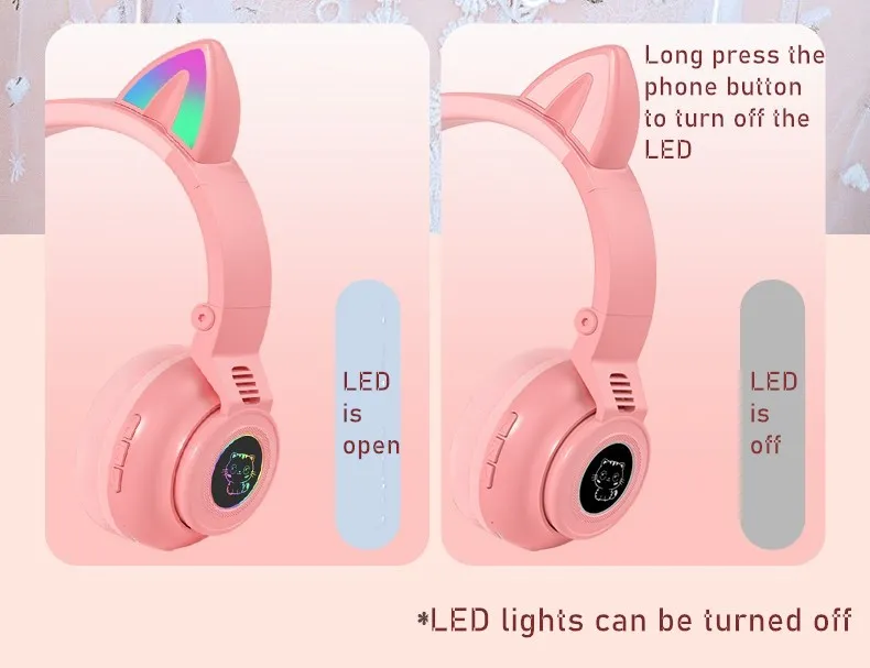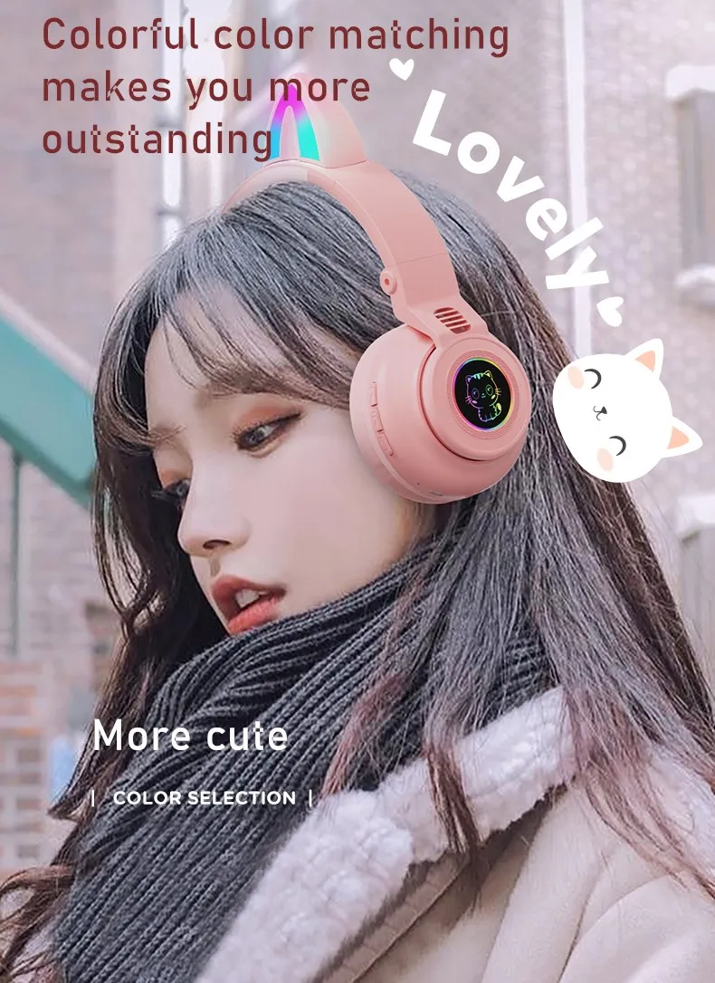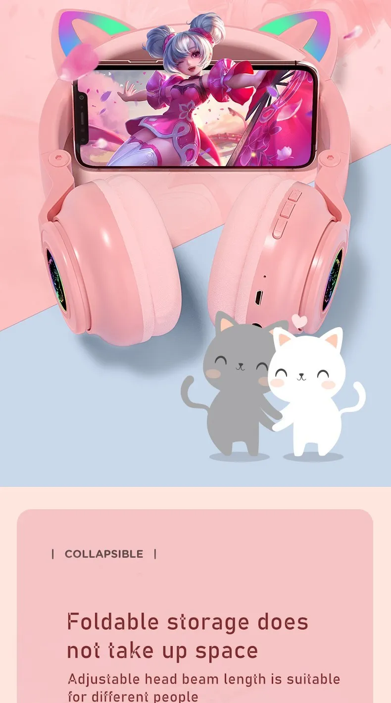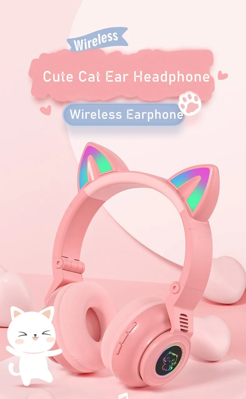 Bluetooth-наушники с кошачьими ушками, со светодиодной подсветкой