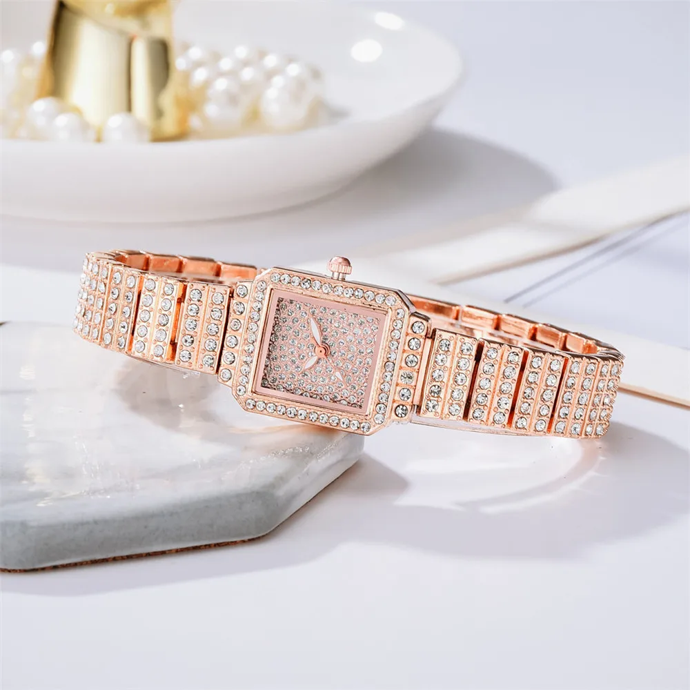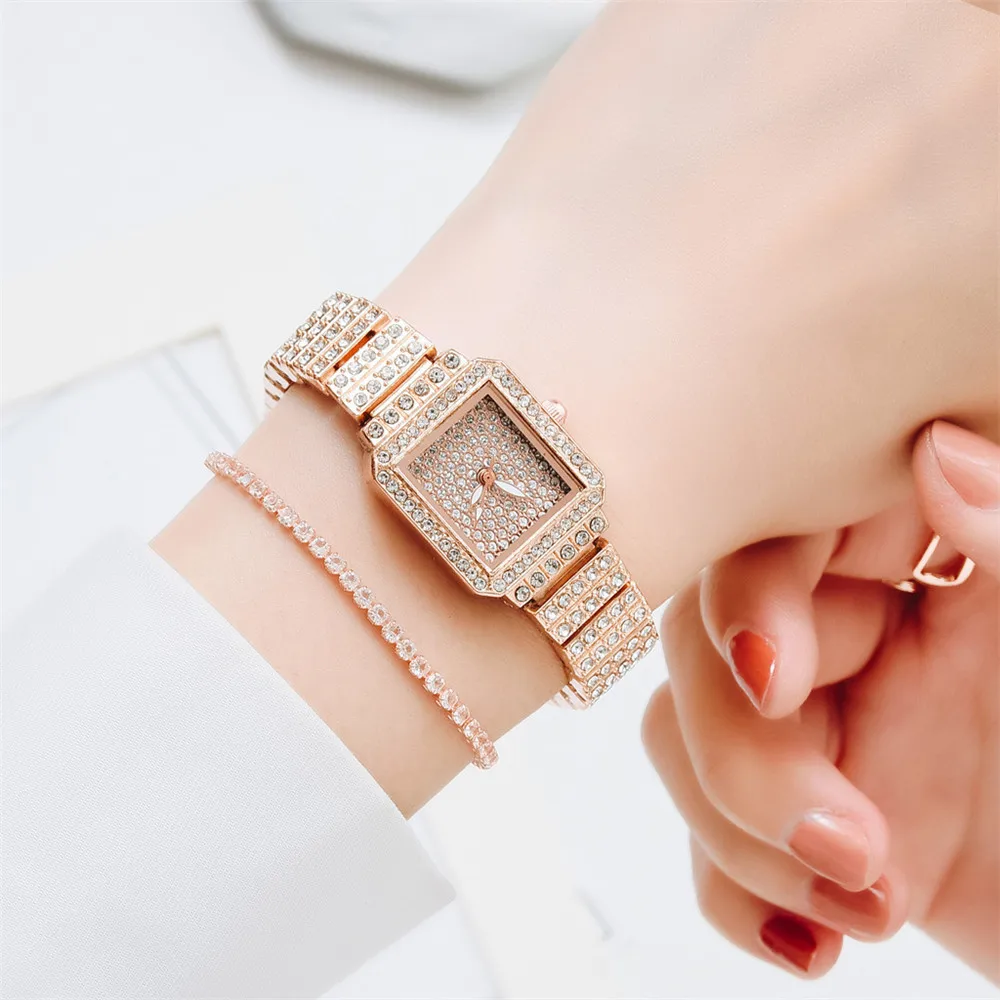 Розовое золото, нержавеющая сталь, модные женские часы, бриллиант, роскошные женские наручные часы небольшой талисман, женские кварцевые часы, подарки, часы