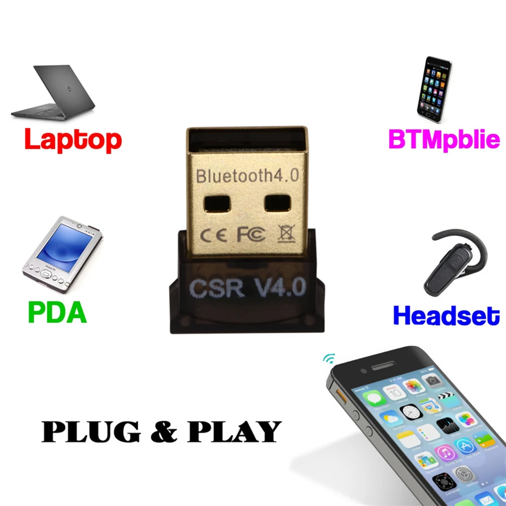 Особенности: Адаптер Mini USB Bluetooth 4,0 с высокой скоростью до 3 Мбит/с. Простое сопряжение, хорошие функции защиты от помех, не нужно загружать драйвер. Bluetooth радиоприемник с низким энергопотреблением USB. Двухрежимная передача Bluetooth. Низкая мощность выбирается 1,2 до 3,6 VI/O. Поддержка голосовых данных Bluetooth. Поддержка нескольких языков. Спецификация: Тип: адаптер Bluetooth Материал: металл, пластик Количество: 1 шт. Цвет: черный, как на фото Версия: CSR4.0 + EDR Операционная система: Windows XP/7/Vista/2000 Бесплатный драйвер, окно 8 необходимо установить драйвер Интерфейс: Соответствие USB Скорость: 3 Мбит/с Получение: до 20 м Сертификаты: FCC, CE Посылка: 1 * адаптер Bluetooth (не включает драйвер cd)