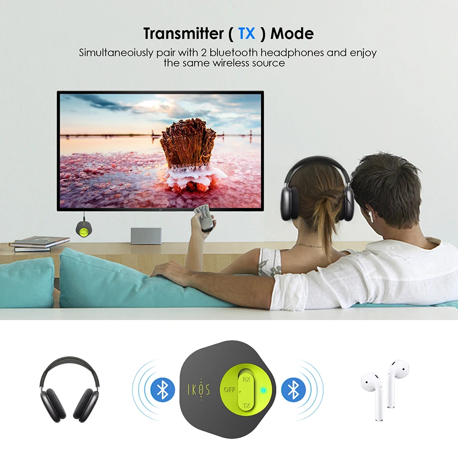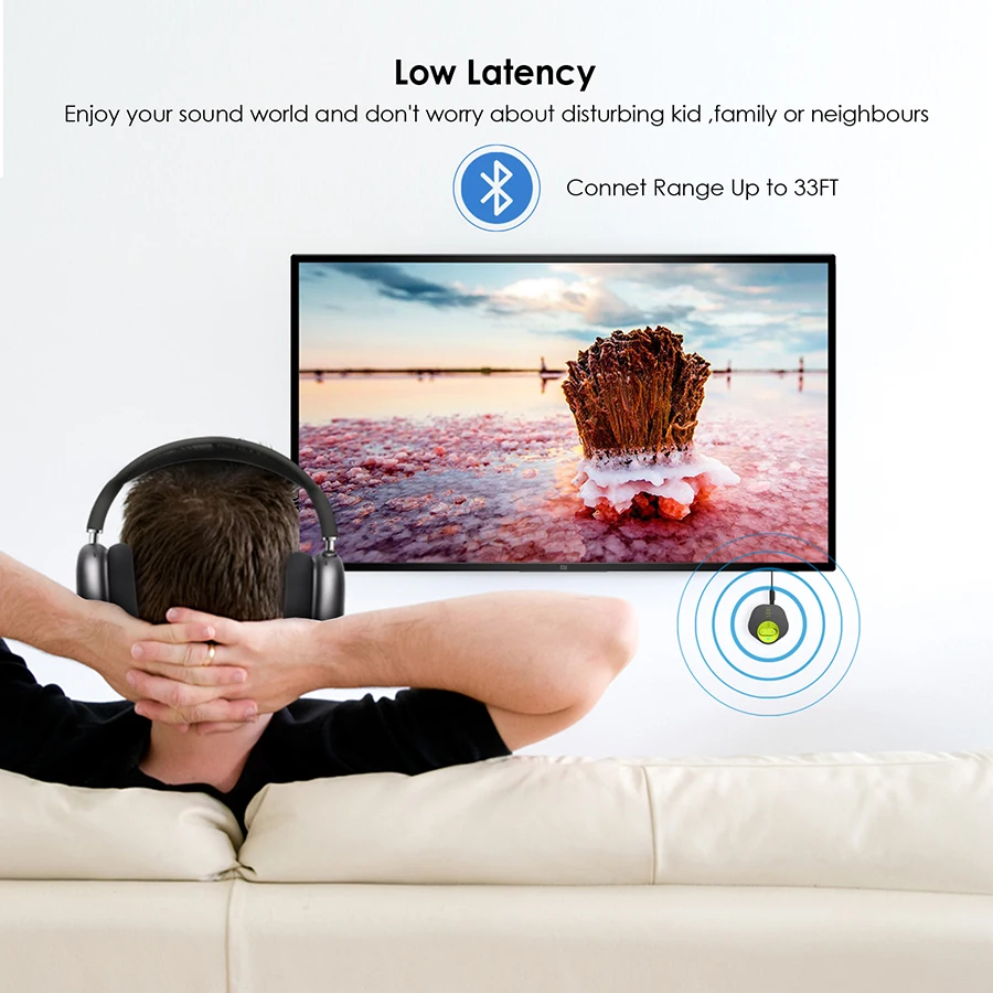 【【Наслаждайтесь звуком, не беспокойтесь 】 Наслаждайтесь звуком Bluetooth в собственном мире, не беспокоясь о других преимуществах, например, просмотром поздних ТВ-шоу. Портативный Bluetooth аудио передатчик на расстоянии до 10 метров/33 футов. Вы можете слушать аудио в любое время/в любом месте, клиент IKOS с 12 месячной гарантией.