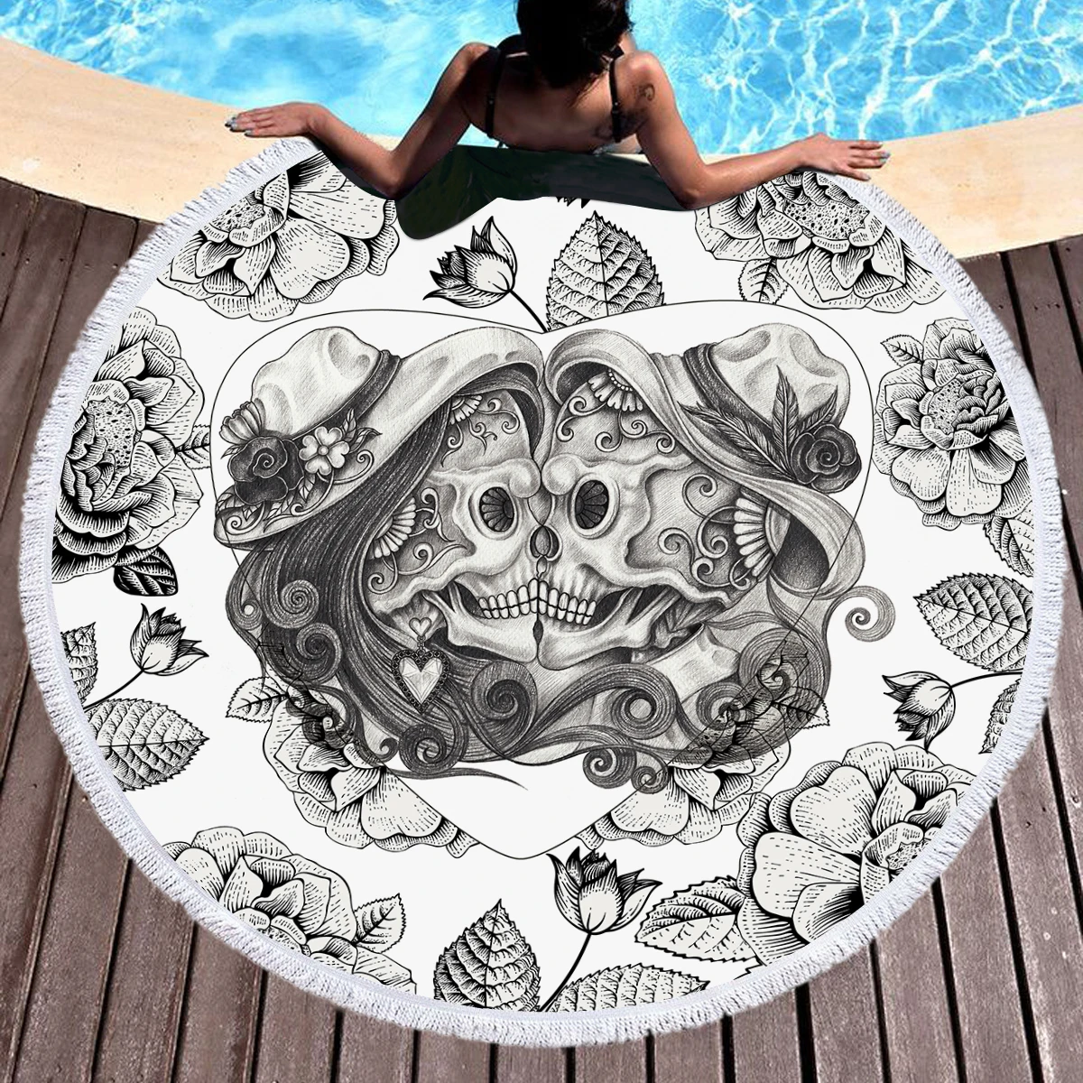 Черно-белые пляжные полотенца со скелетом, летнее круглое пляжное полотенце из микрофибры, банные полотенца для взрослых, украшение для дома