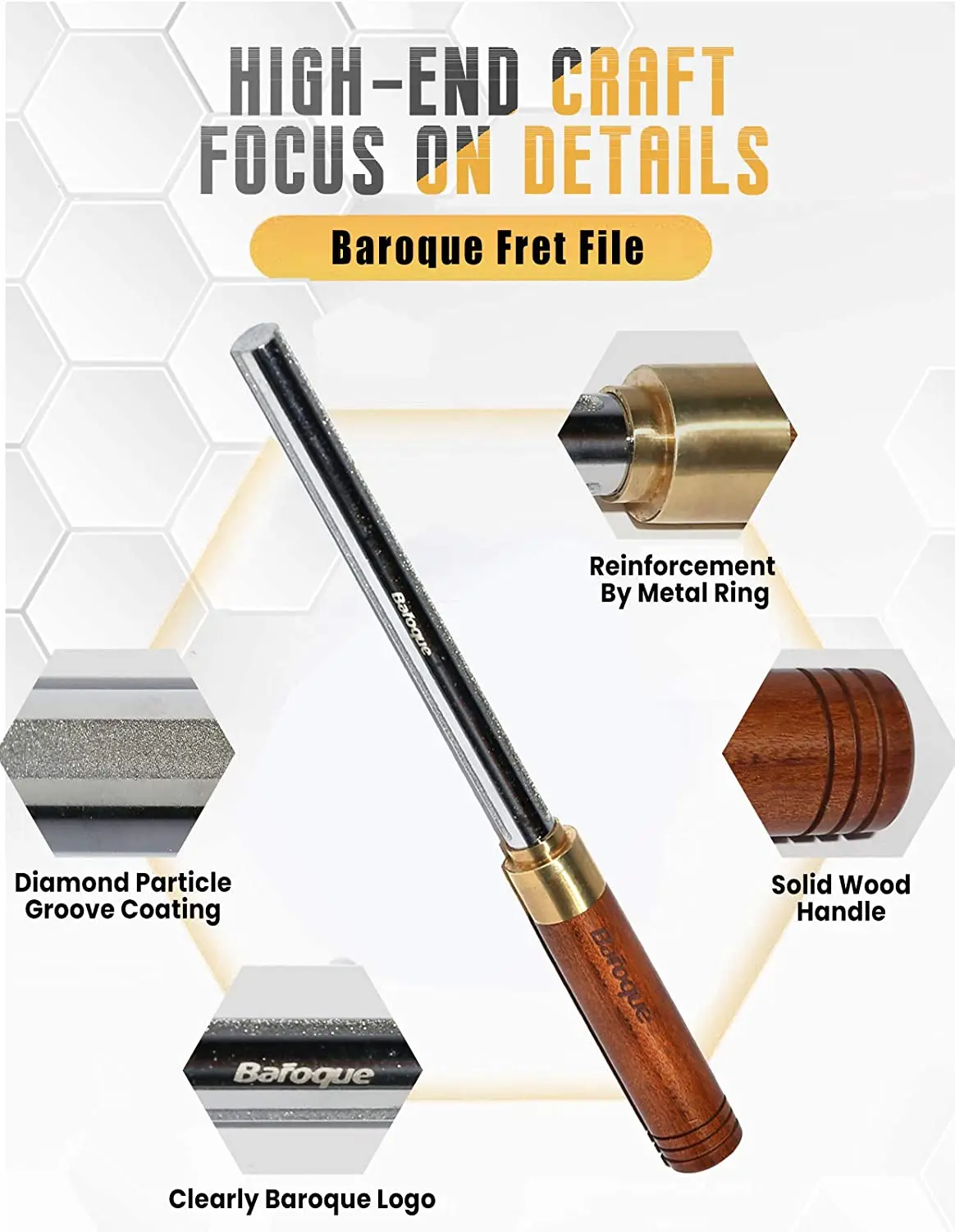 Барокко Fret коронные файлы алмаз, гитара Fret Корона туалетный файл, Fret ремонтные инструменты, Luther инструменты, улучшенное 3-е поколение, с 3 размеров для гитар, укулелей, бас, банджо, мандолин.