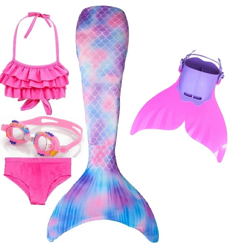 Набор 1: 1 * хвост русалки + 1 * бюстгальтер + 1 * шорты + 1 * очки + 1 * плавник