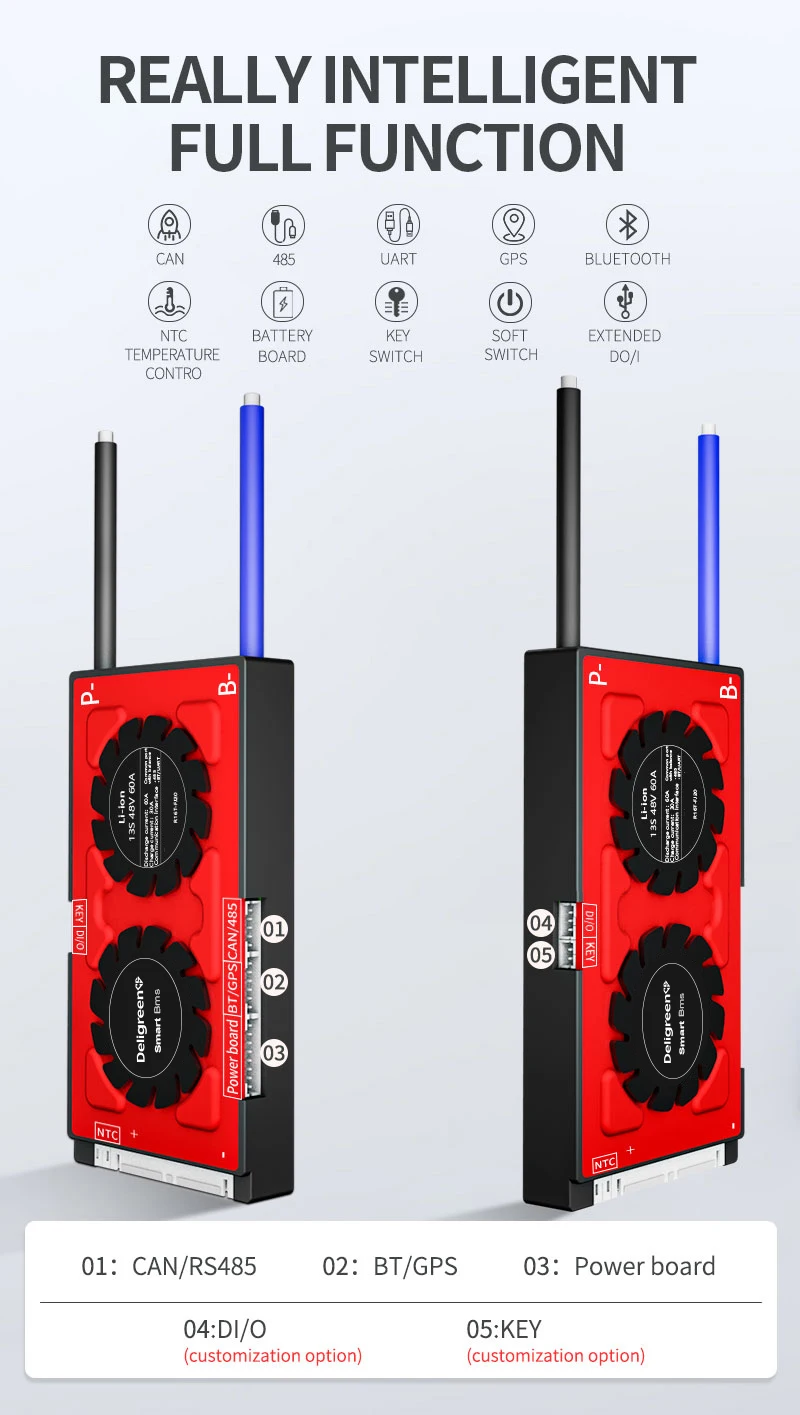 Важная особенность UART: UART является универсальным асинхронным приемником/передатчиком, он преобразует данные, которые будут передаваться между последовательной связью и параллельной коммуникацией. Как чип для преобразования параллельных входных сигналов в серийные Выходные сигналы, UART обычно интегрируется в другие коммуникационные интерфейсы. RS485: Пожалуйста, выберите модель RS485. RS-485 принимает сбалансированную передачу и дифференциальный прием, поэтому он имеет способность подавлять помехи в обычном режиме. Модуль Bluetooth: если вам нужна эта функция, пожалуйста, выберите модуль bluetooth, если вы не покупаете его, мы не отправим его вам. Вы должны купить ниже аксессуары отдельно: 1. Индикатор питания 2.BMS ЖК-экран управления
