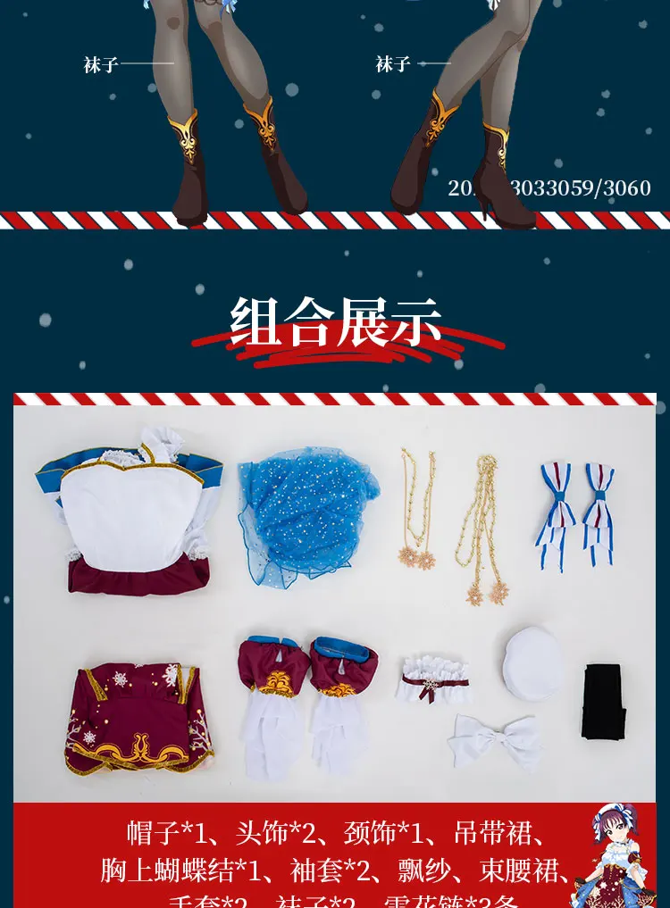 Leah: головной убор * 1 + шейный платок * 1 + юбка на бретельках + Бант на груди * 1 + рукав * 2 + юбка на талии из плавающей пряжи + перчатки * 2 + носки * 2 + цепочка со снежинками * 3Цвет может немного отличаться между ЭЛТ и ЖК-экранами. Пожалуйста, не покупайте, если вы слишком чувствительны к любой цветовой разнице.