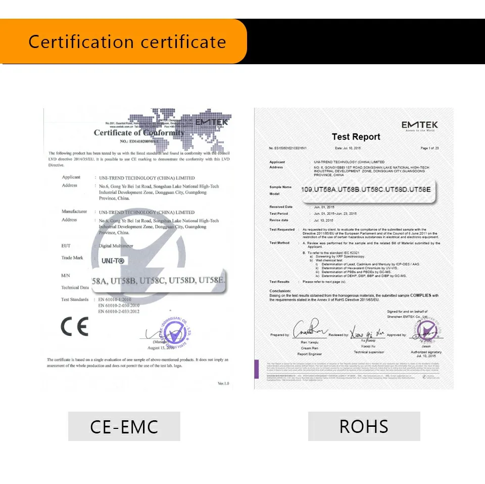 Посылка для UT58E:1 * цифровой мультиметер1 * Тестовый leads1 * термополиуретан 1 * Аллигатор clip1 * Многоцелевой socket1 * Руководство пользователя на английском языке 1 * цветная коробка