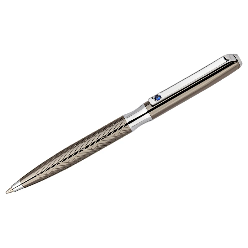 Ручка оснащена поворотным механизмом подачи стержня. Утончённый клип с инкрустацией поможет фиксировать её на блокнотах и планшетах, а пишущий узел диаметром 1 мм сделает письмо максимально мягким.
