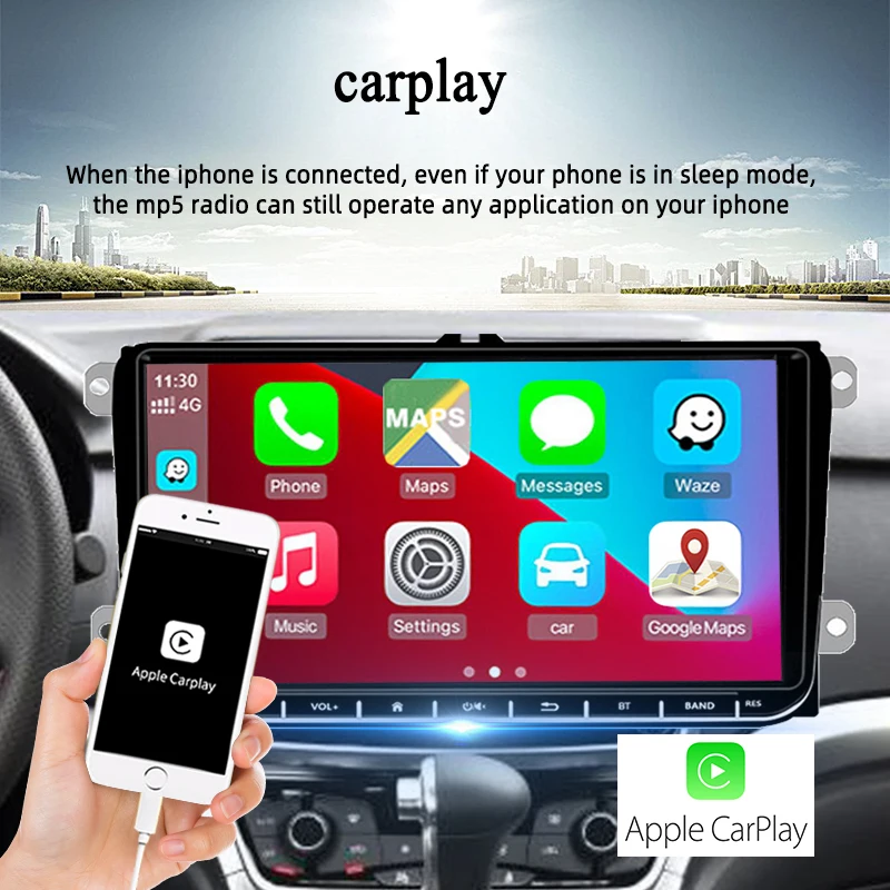 Встроенный carplay:Встроенный carplay: при подключении к iphone, даже если ваш телефон находится в спящем режиме, радио mp5 по-прежнему может работать с любым приложением на вашем iphone, таким как телефон без рук, GPS, это поможет вам сохранить больше мощности телефона, это потрясающе!