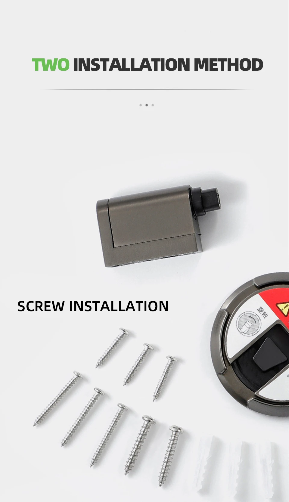 Легко устанавливается, поставляется с винтами и самоклеящимися наклейками