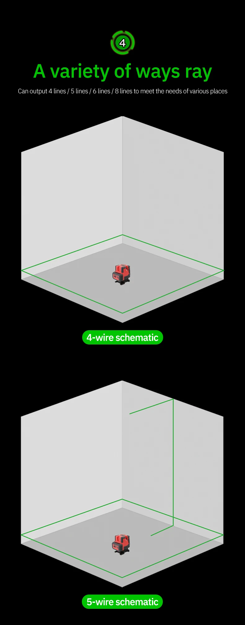 Эти лазерные нивелиры оснащены зеленым лазером LD, подходит для больших или ярких рабочих мест.