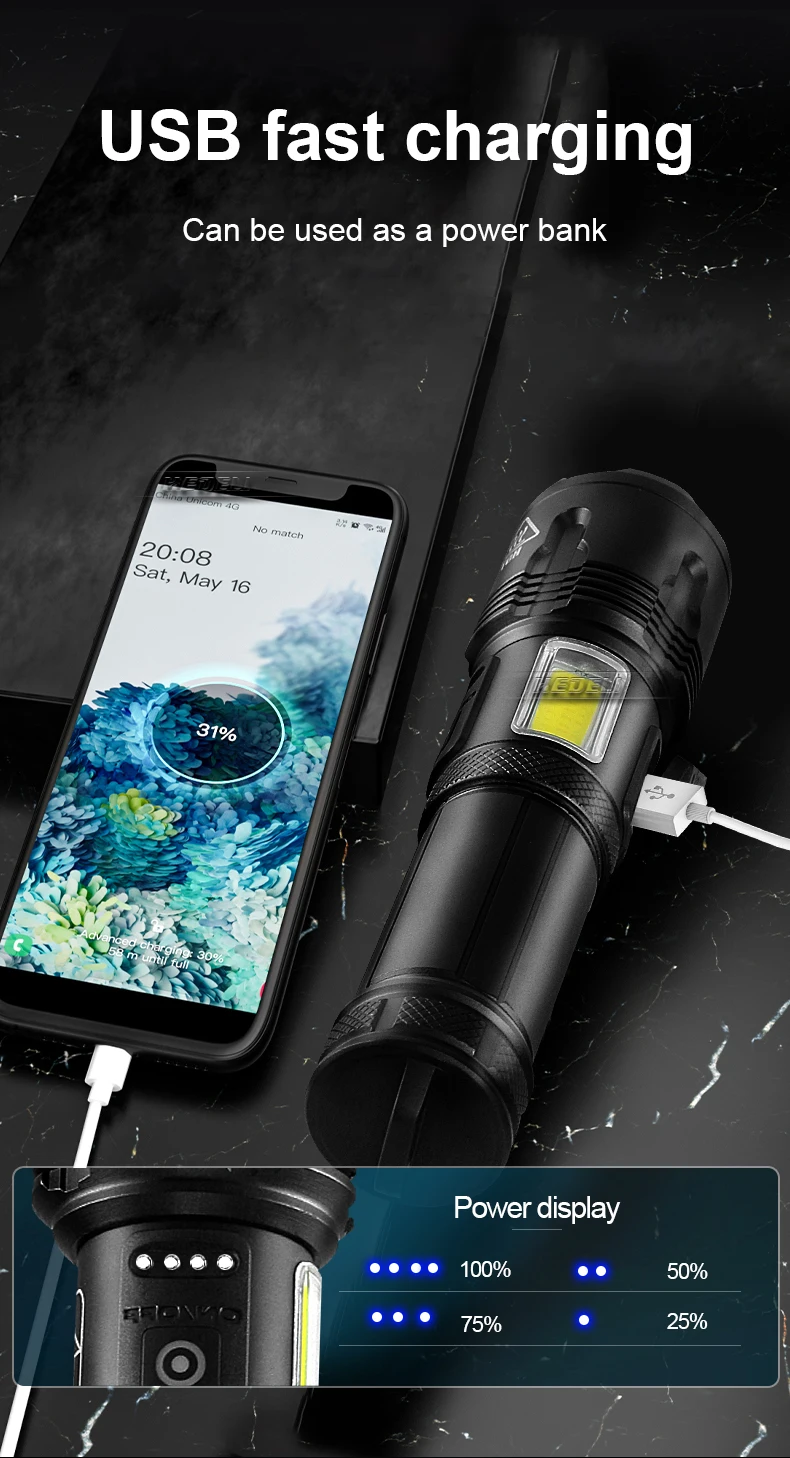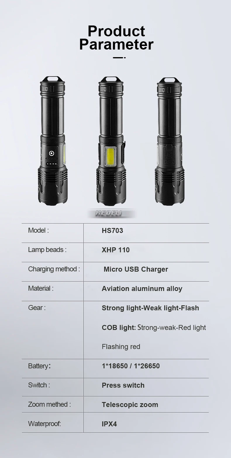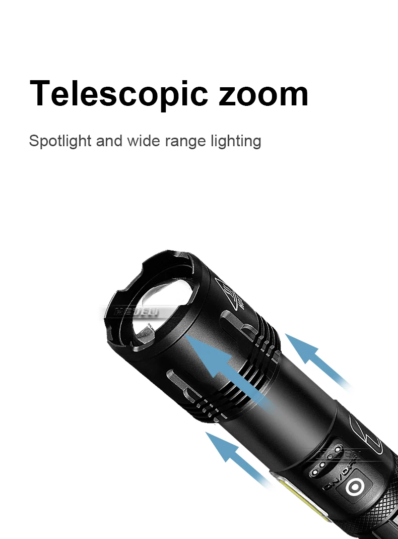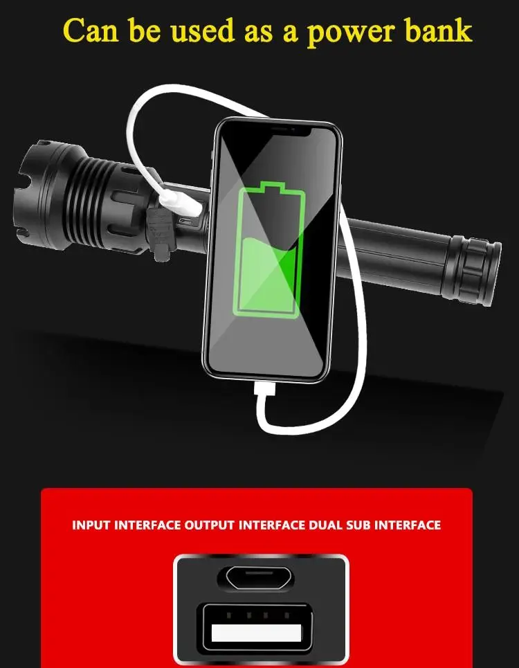 7. Используйте 2*18650 или 2*26650 батареи большой емкости; Литиевая батарея используется для использовать d в течение длительного времени