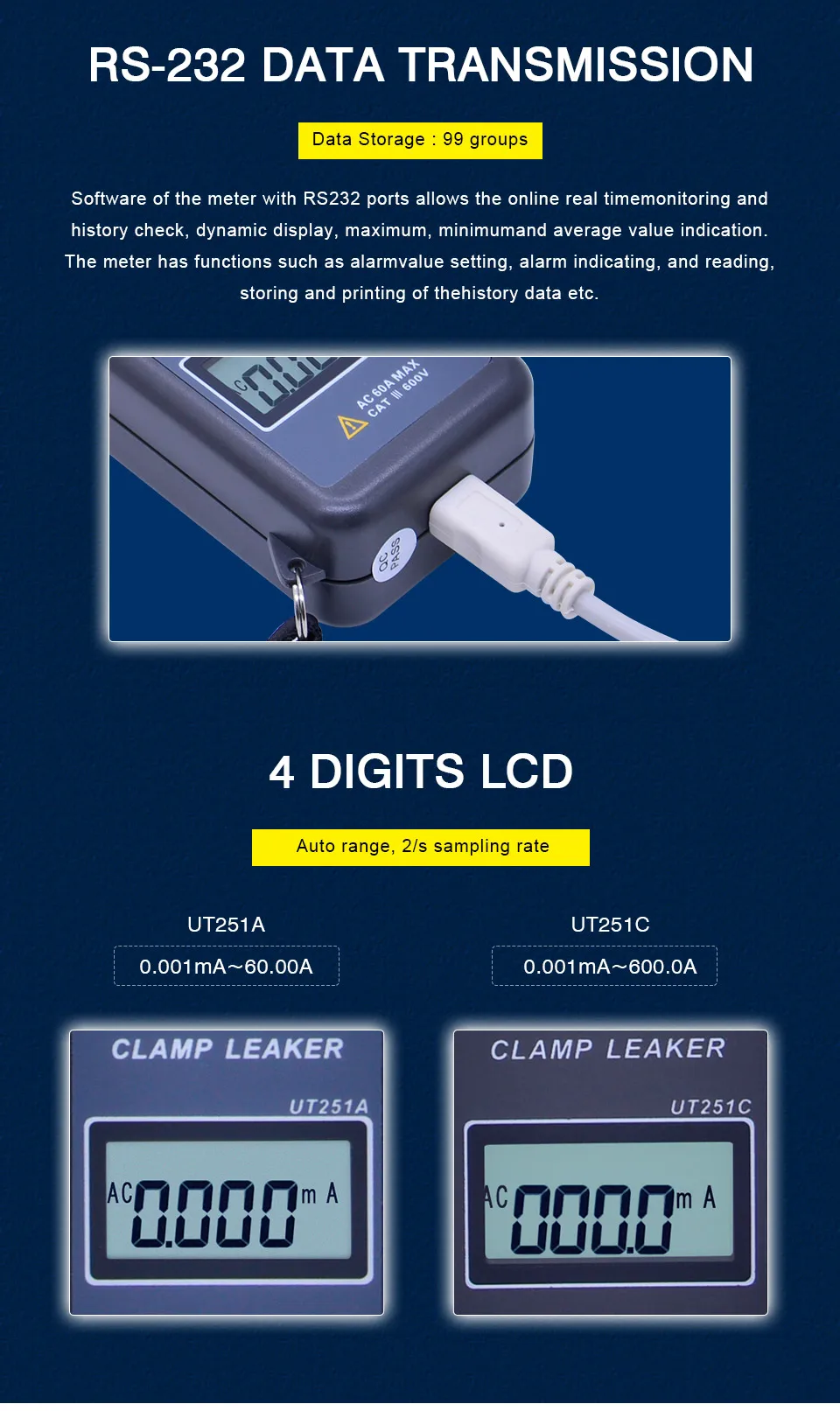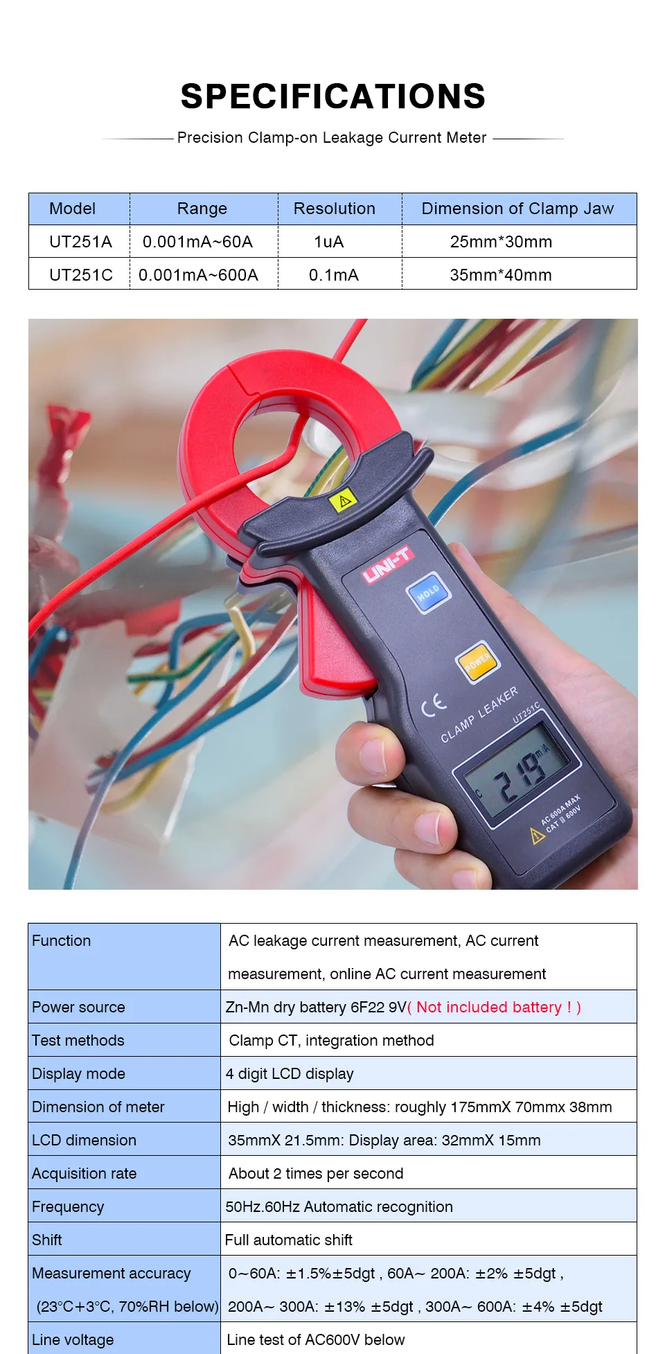 Высокочувствительные токовые клещи UT251 серии с высокой чувствительностью предназначены для тестирования тока утечки переменного тока. Эти Счетчики высокого разрешения отлично подходят для таких применений, как проверка тока утечки двигателя, бытовой техники и другого электрического оборудования до 600а. Проверка тока утечки для двигателя, бытовой техники и другого электрического оборудования до 600а.