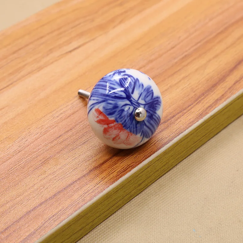Из американской керамики ручка ретро синий и белый фарфор дверь для ящика шкафа шкаф комод Дверная ручка