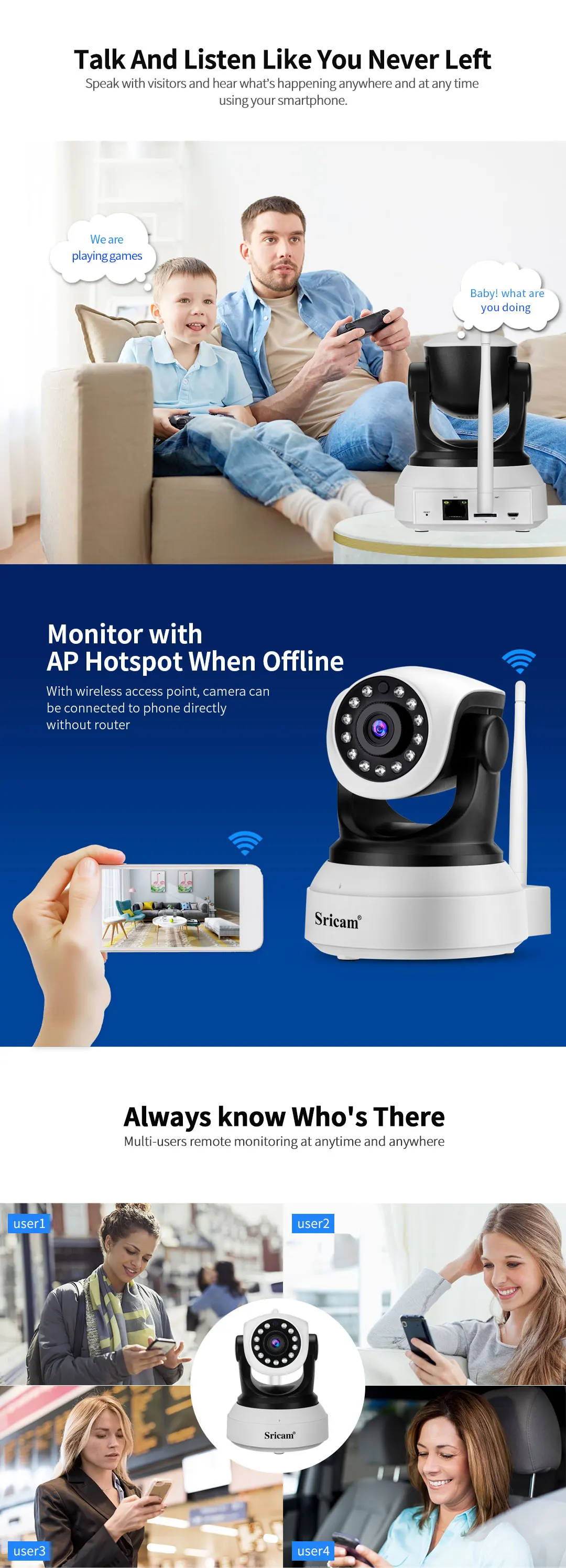 Sricam SP017 HD 1296P Wifi IP камера 360 ° мобильный Удаленный просмотр Крытый детский монитор двухстороннее аудио видео наблюдение CCTV камера