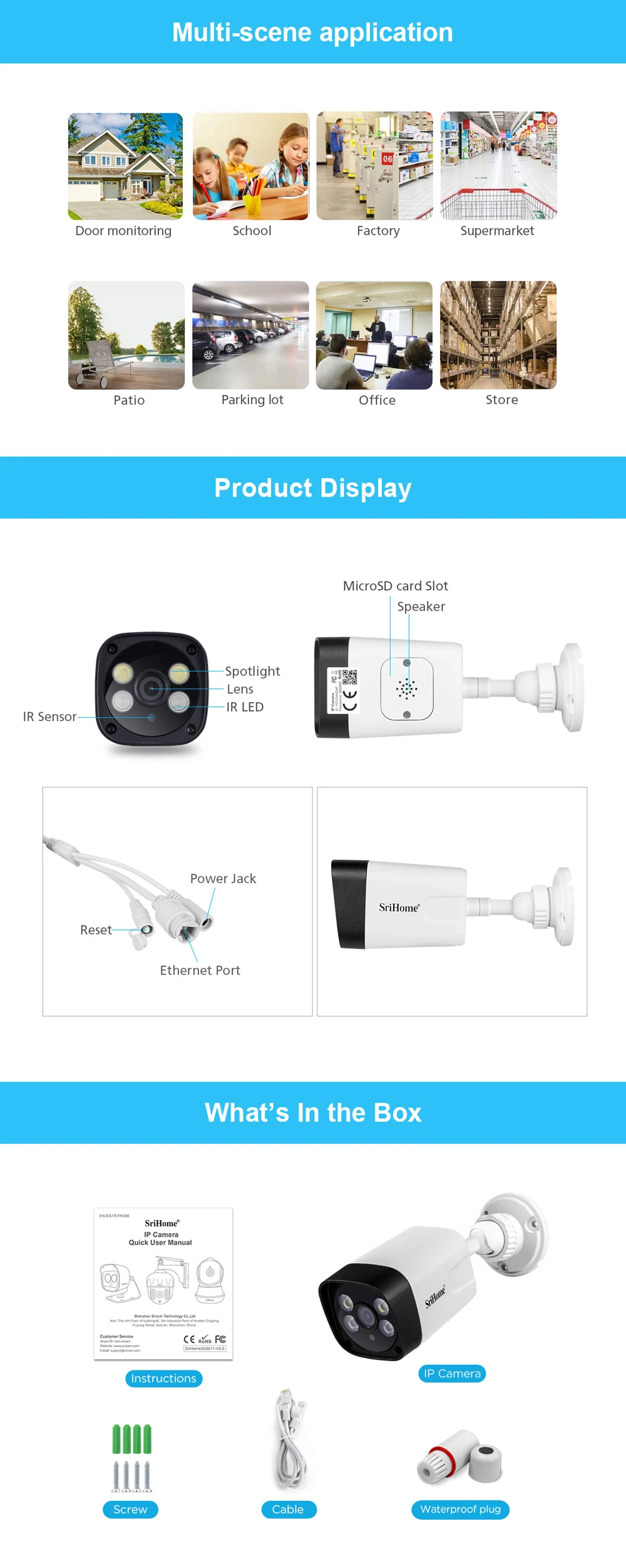 Sricam SH035 3.0MP WIFI IP камера POE мощность открытый водонепроницаемый полноцветный ночное видение Startlight H.265 мобильный Удаленный просмотр CCTV камера