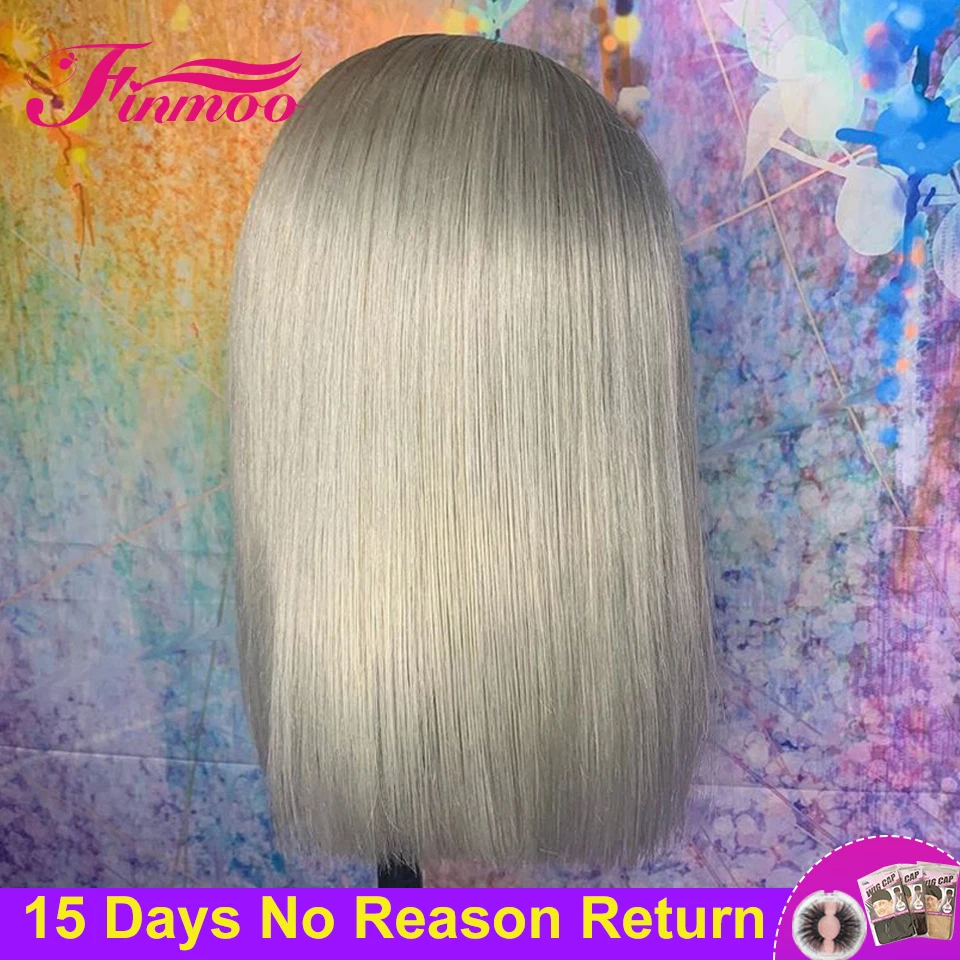 Парики из натуральных волос на кружеве Боб серый 613, парик из бразильского серебристого и серого цвета с прозрачной кружевной передней частью, Короткие парики для женщин