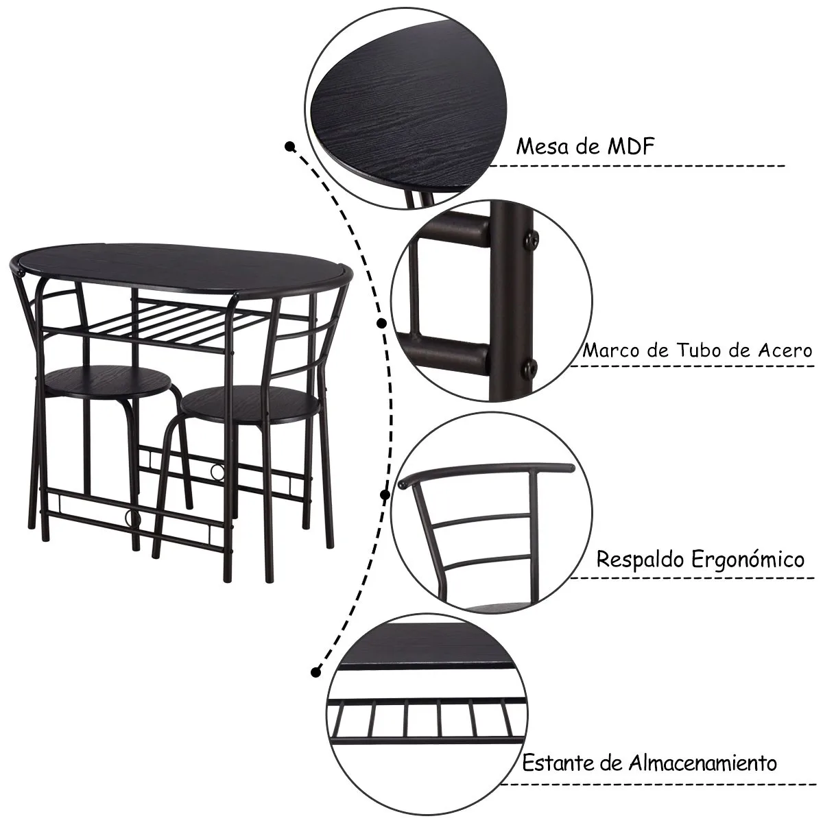 Этот набор столов и стульев изготовлен из МДФ и стальных труб. Устойчив и устойчив. Эргономичные спинки достигают точной высоты столешницы. Экономьте место, когда вы его не используете. Под столом есть дополнительная полка, в которую можно положить винные бутылки, фруктовые тарелки, книги, журналы. Это практичный и красивый стол и стул.