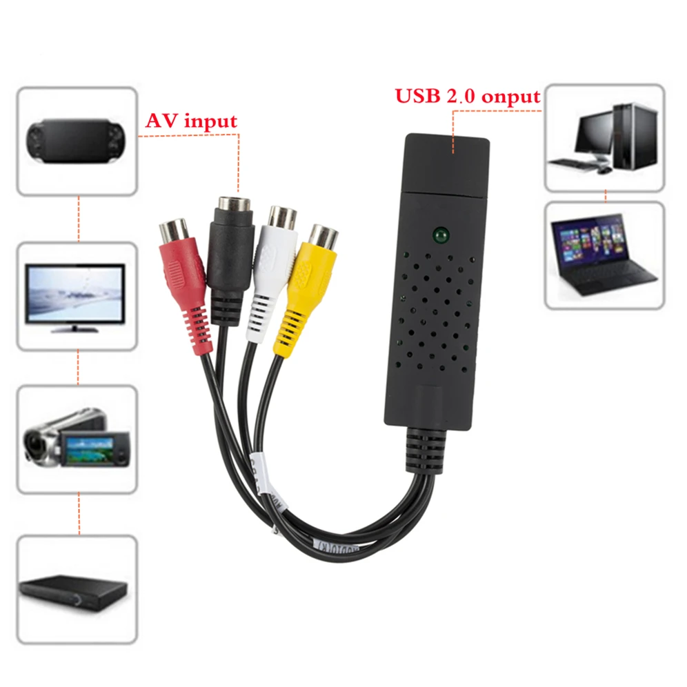 Популярный Интерфейс USB 2,0 и не нужен другой источник питания. Захват видео и аудио через интерфейс USB 2,0. Поддержка управления яркостью, контрастностью, оттенком и насыщенностью. Размер подходит, легко носить с собой. Может захватывать андио без звуковой карты. Высокая технология plug & play, удобная в использовании. Поддержка всех форматов: запись в DVD +/- R/RW DVD +/- VR. И DVD-Video. Подача заявки на участие в интернет-конференции/сетевом собрании. Соответствует универсальной серийной шине. Поддержка NTSC, PAL, формат видео.