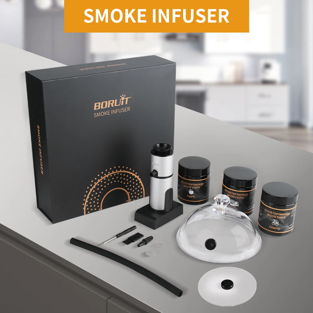 -- Курительная пушка быстро делает курение с различными типами древесных чипсов, чая, трав, специй, сена, сухоцветов. Для добавления холодного дыма и аромата в еду или напитки требуется всего 3-5 минут.