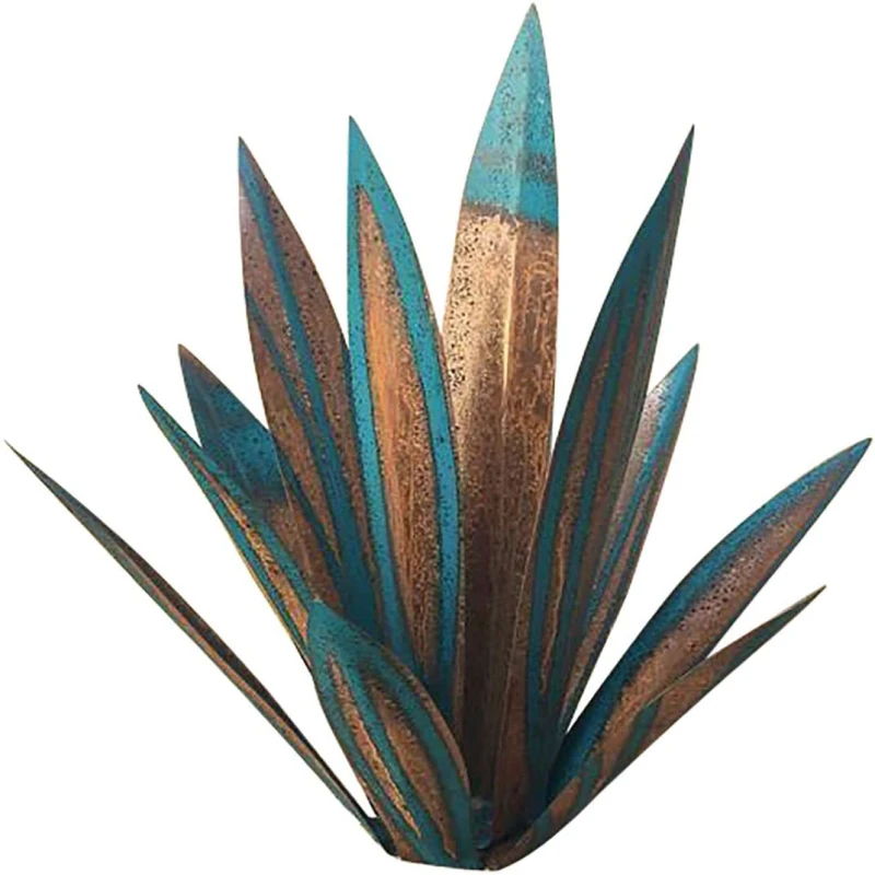This is a blue, green tequila plant with red highlights, which contrasts sharply with the garden-style decoration.