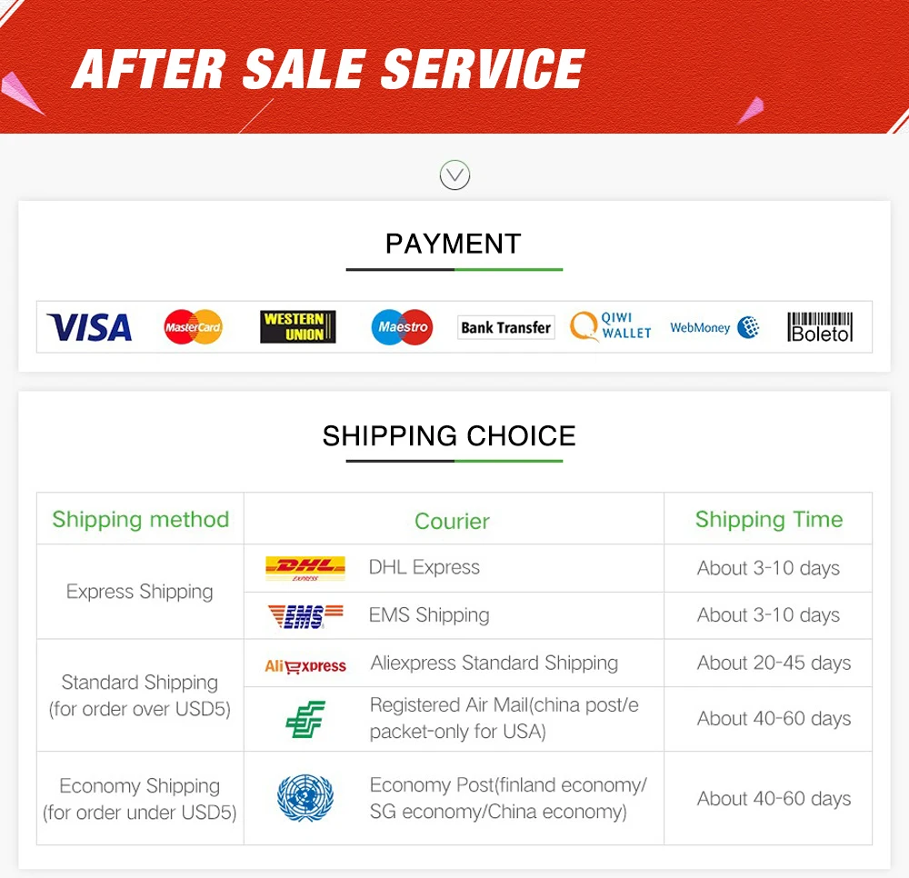 2. Если у вас возникли проблемы с качеством при получении товара, пожалуйста, сначала свяжитесь с нашей службой поддержки клиентов, мы решим вашу проблему или вернем вам деньги.
