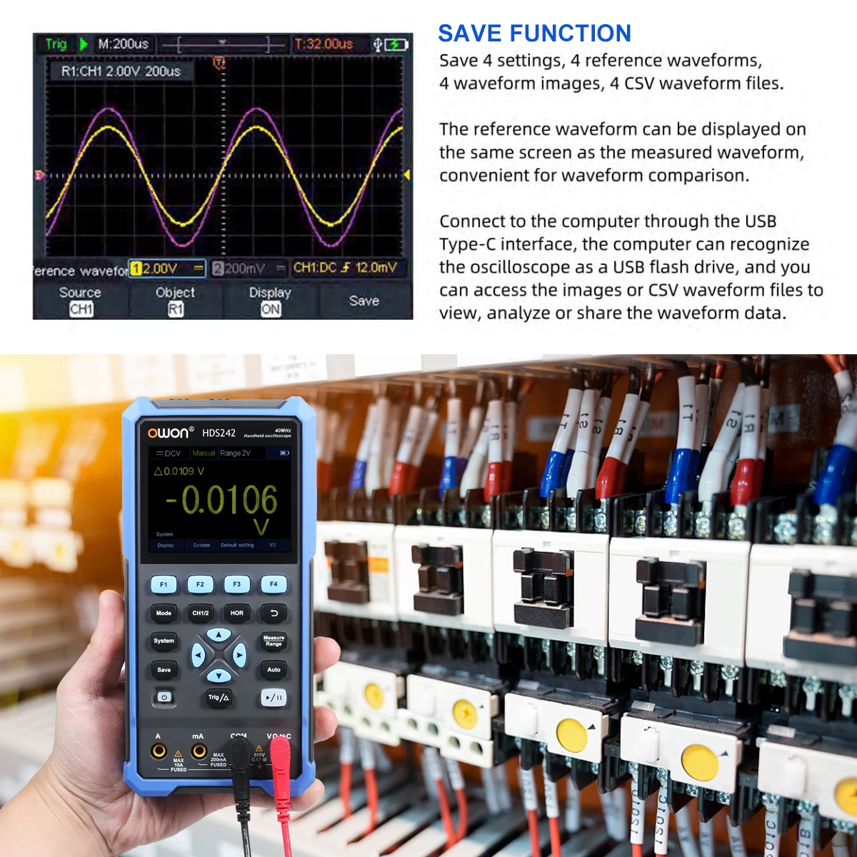 [2-В-1 измеритель] осциллограф + мультиметр. Одна машина в руке, беспроблемное тестирование. Подходит для наружного обслуживания, быстрого измерения на месте, обслуживания автомобиля, обнаружения мощности и т. д.