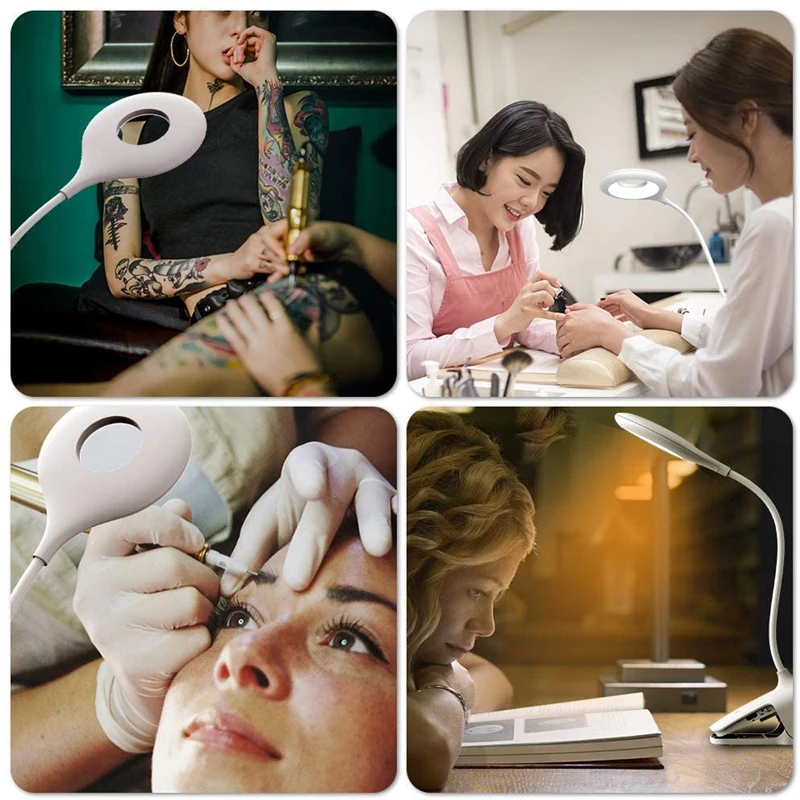 Прочный зажим с мягким зажимом на любом краю мебели, не царапая его. Гибкая горловина позволяет изгибаться и скручиваться в точное положение, зажим света дает вам много светильник, где бы вы ни находились