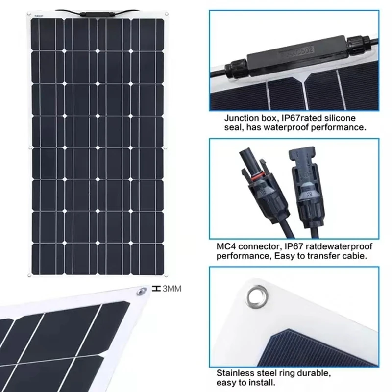 Основной особенностью этого продукта является зарядка 12vlead-кислотных батарей. В том числе 12 В лития и другие гипы, он также может быть согнут до 30 градусов, чтобы установить и обеспечить питание в палатках лодок Rv, палатках или любой другой неправильной поверхности. Способ источника питания-Энергосбережение и защита окружающей среды, которые отлично подходят для работы на открытом воздухе, путешествий или кемпинга.