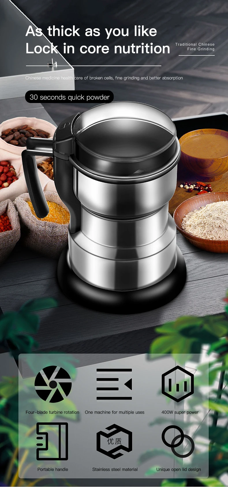 Электрический кофемолка кухонные инструменты Травы Орехи бобы специи зерно шлифовальный станок многофункциональная домашняя кофемолка
