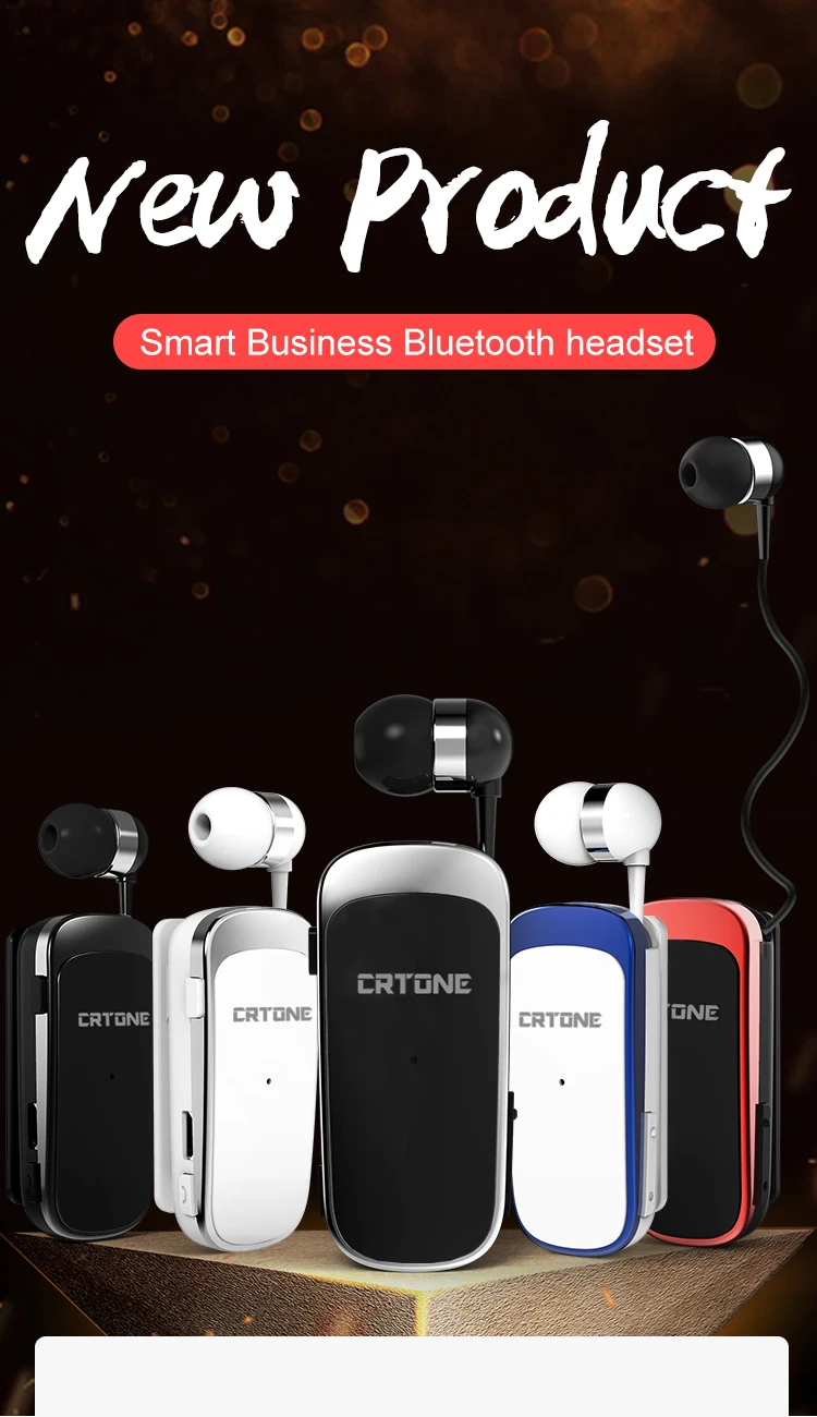 CRTONE K52 Беспроводная бизнес bluetooth-гарнитура, спортивные мини-наушники, телескопические стерео вкладыши с зажимом, вибрация для Iphone 12 PK F910 F920