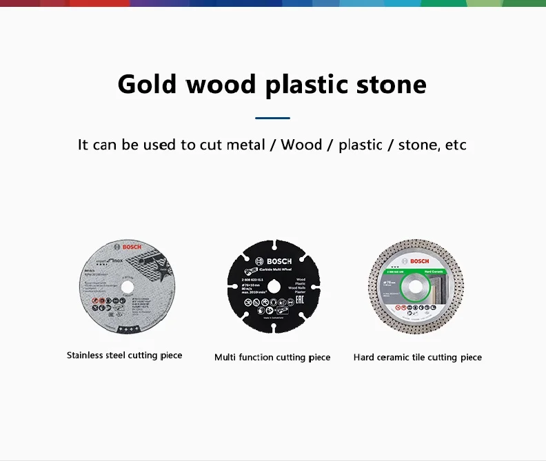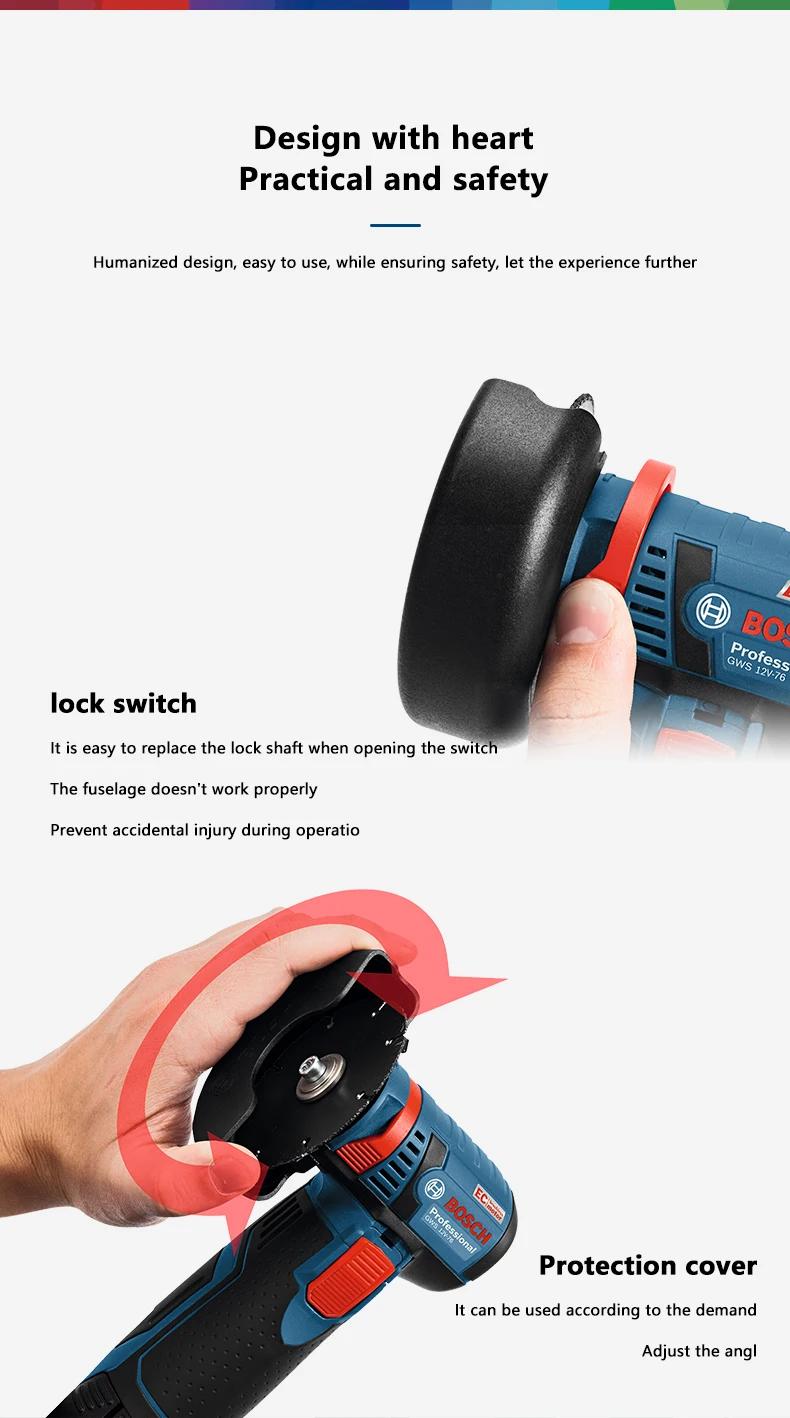 ①EC бесщеточный двигатель: сильный и долговечный, эффективная работа ② Переключатель блокировки оси с учетом безопасности и удобства: Нет необходимости постоянно нажимать на переключатель блокировки оси при смене аксессуаров ③ Защитная крышка: угол может быть отрегулирован в соответствии с эксплуатационными требованиями для обеспечения безопасности ④ Быстрая остановка: Выключите переключатель для быстрой остановки ⑤ Легкий корпус и удобное использование одной рукой: его легко использовать в небольших пространствах/на большой высоте ⑥ Маленькая машина с большим мастерством, может обрабатывать различные материалы: она может разрезать различные материалы, такие как золото, древесный пластик, камень и т. д.