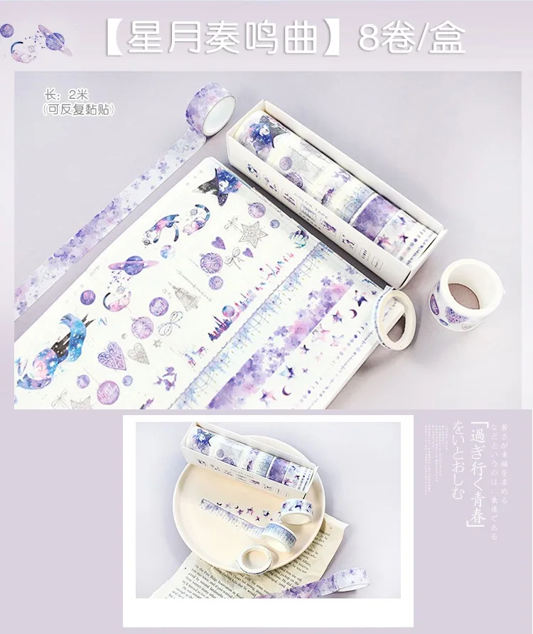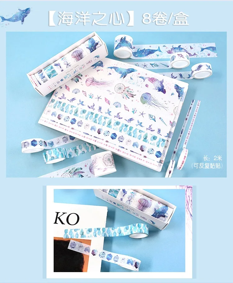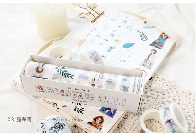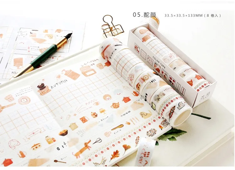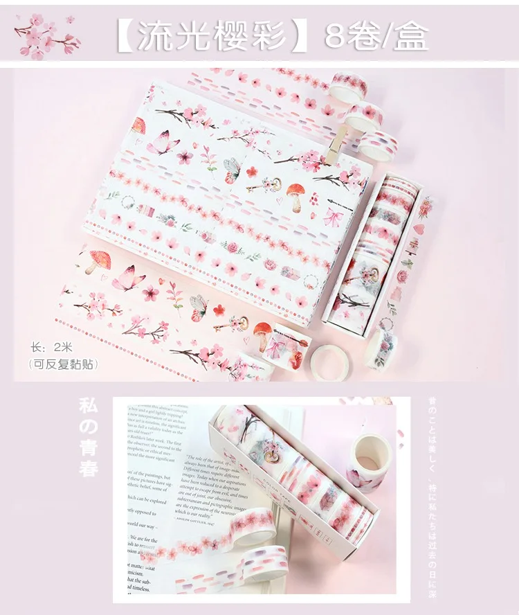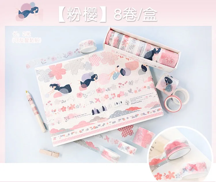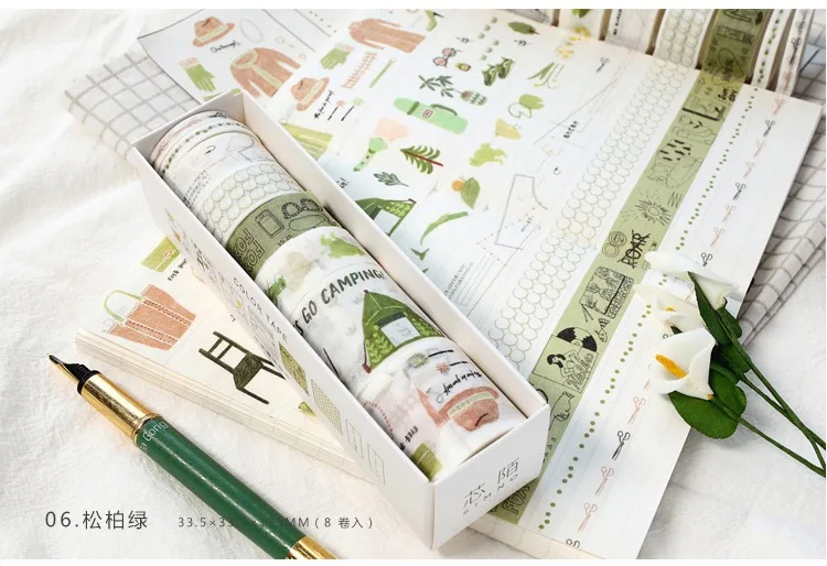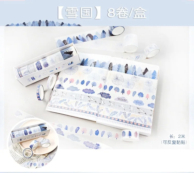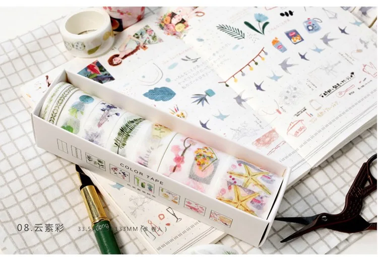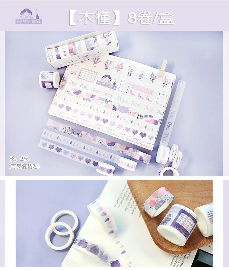 8 рулонов/упаковка Маскировочный набор декоративного скотча васи DIY Клей Скрапбукинг стикер этикетка маскирующая лента дневник школьные канцелярские принадлежности