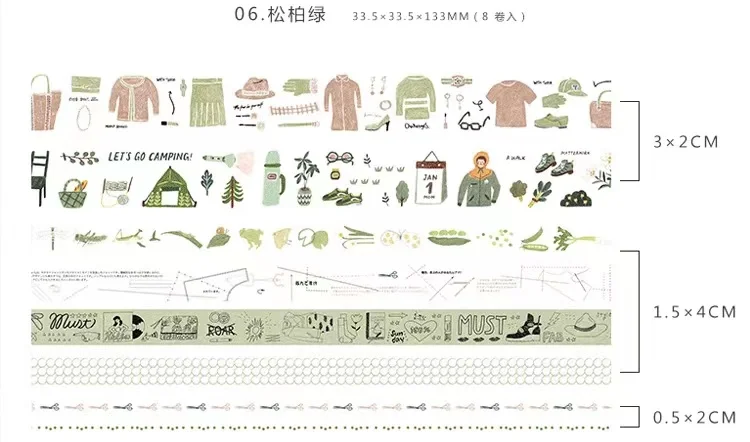 Размеры и Количество: 2 рулона: 0,5 см * 2м стикер/4 рулона: 1,5 см * 2м стикер/2 рулона: 3 см * 2м стикер