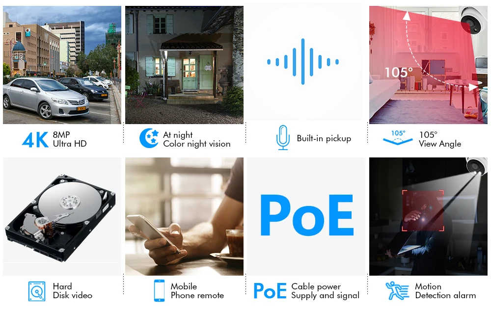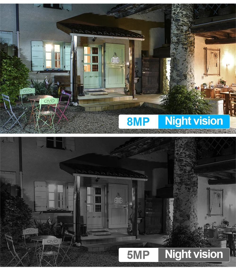 С высоким разрешением 8 мегапикселей (3840x2160P), эта ip-камера видеонаблюдения 8 Мп HD может снимать видео в качестве HD 3840p. Это огромный прогресс по сравнению с 720p HD или 1080p Full HD. Вы никогда не пропустите ни одной детали ваших близких. Что позволяет вам видеть все объекты очень четко