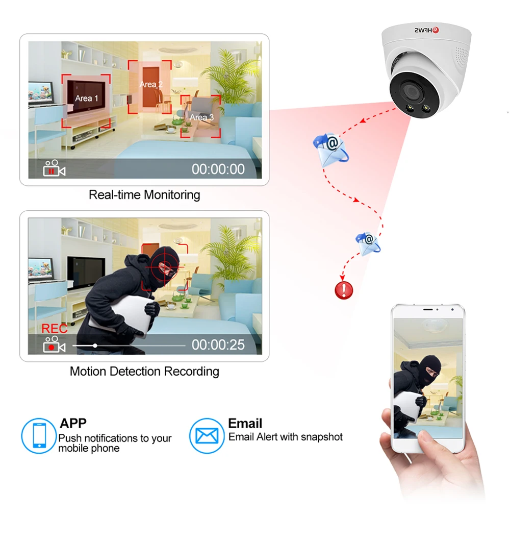 При обнаружении движения NVR сохранит видеозапись на жестком диске, не пропуская каких-либо важных событий. Вы даже можете убедиться, что Ложные сигналы тревоги избегаются, установив «маску» для обнаружения движения, чтобы блокировать области с постоянным движением. Когда кто-то врезается в область съемки, камера будет оповещать о сообщениях, которые будут доставлены в приложение для телефона