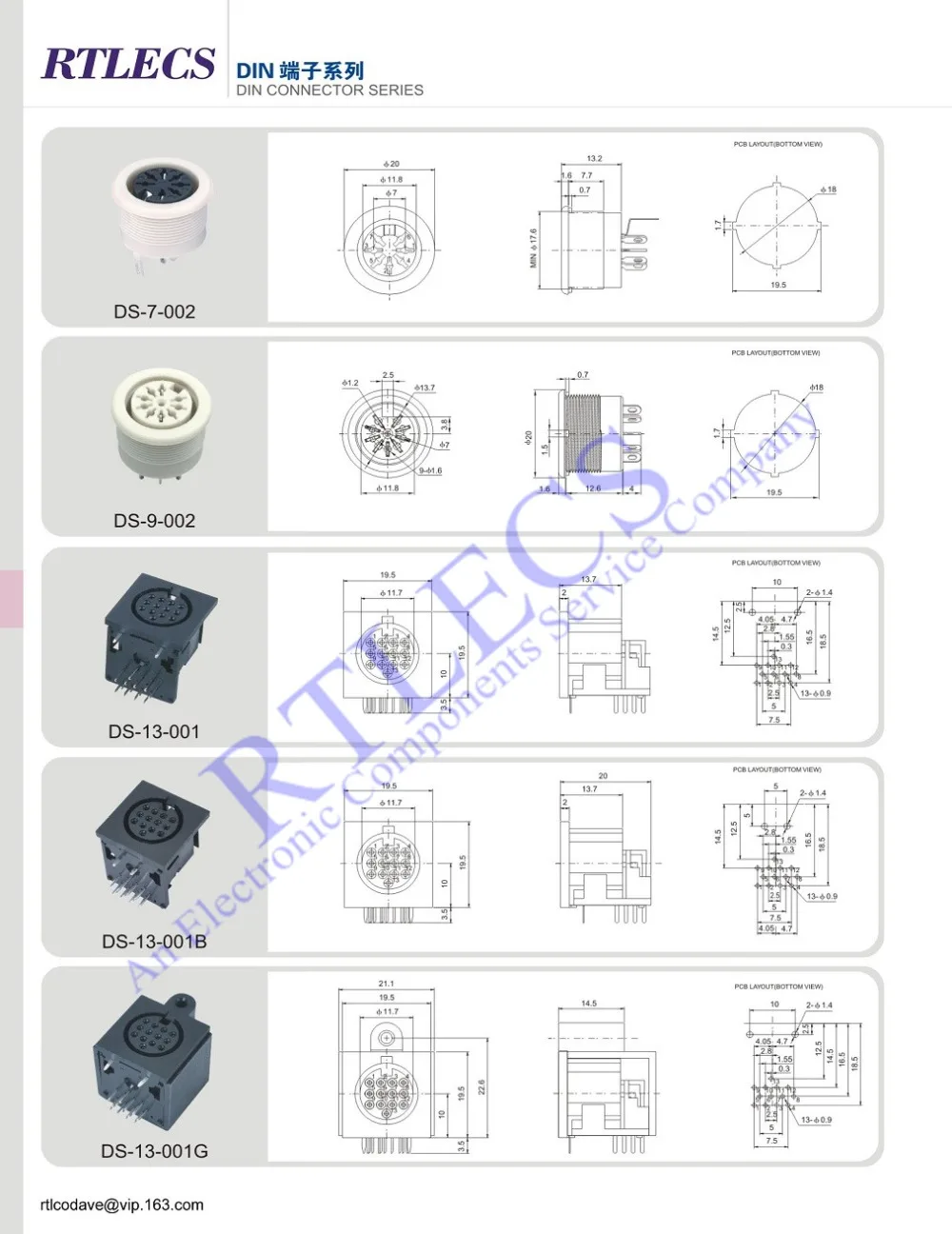 Разъем DIN разъем 8 положения PCB панель крепление женский DIN 8 контактный разъем правый угол через отверстия PCB
