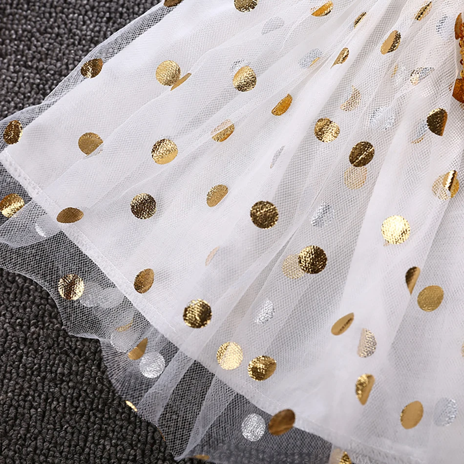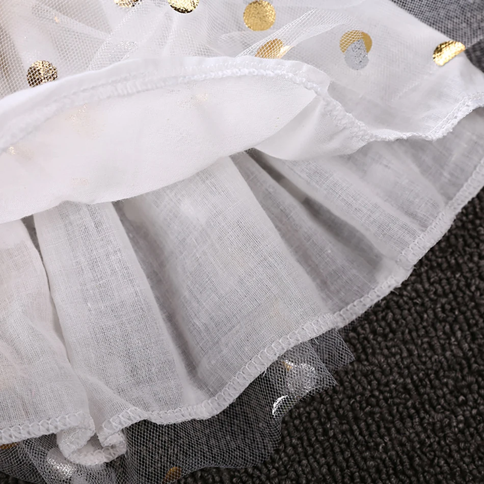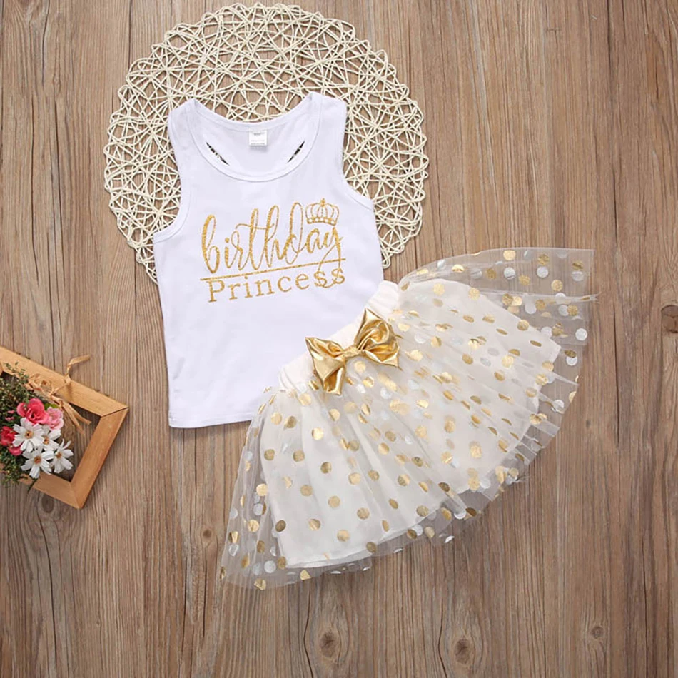 Название: нарядный комплект с платьем принцессы для девочек; Летний жилет с буквенным принтом; Топы + сетчатая юбка-пачка в горошек; Детский костюм из 2 предметов; Детская одежда с бантом и блестками; Упаковка: opp сумки; Материал: хлопок, полиэстер, сетка; Размер: 80-90-100-110-120