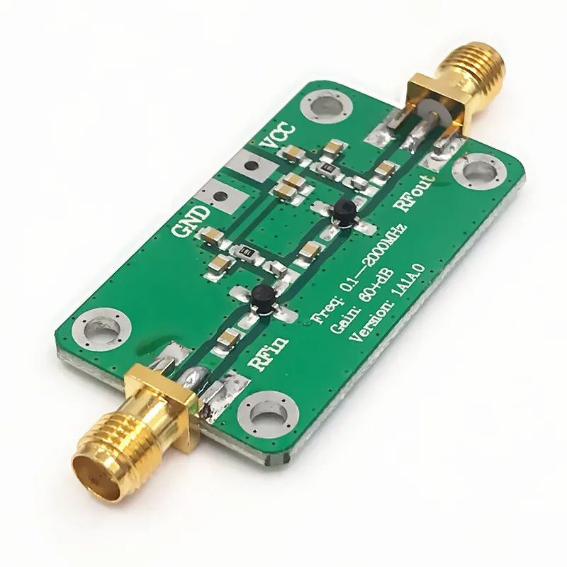 Усилитель имеет широкий частотный диапазон, высокий коэффициент усиления, шум небольшой, его можно использовать в различных передних концах радиочастотного приема, увеличить расстояние связи! Широкий коротковолновый, fm-вещание, приемник дистанционного управления, усилитель сигнала кабельного телевидения и другие места нуждаются в малошумном и малом усилении сигнала RF!2. Технический индекс