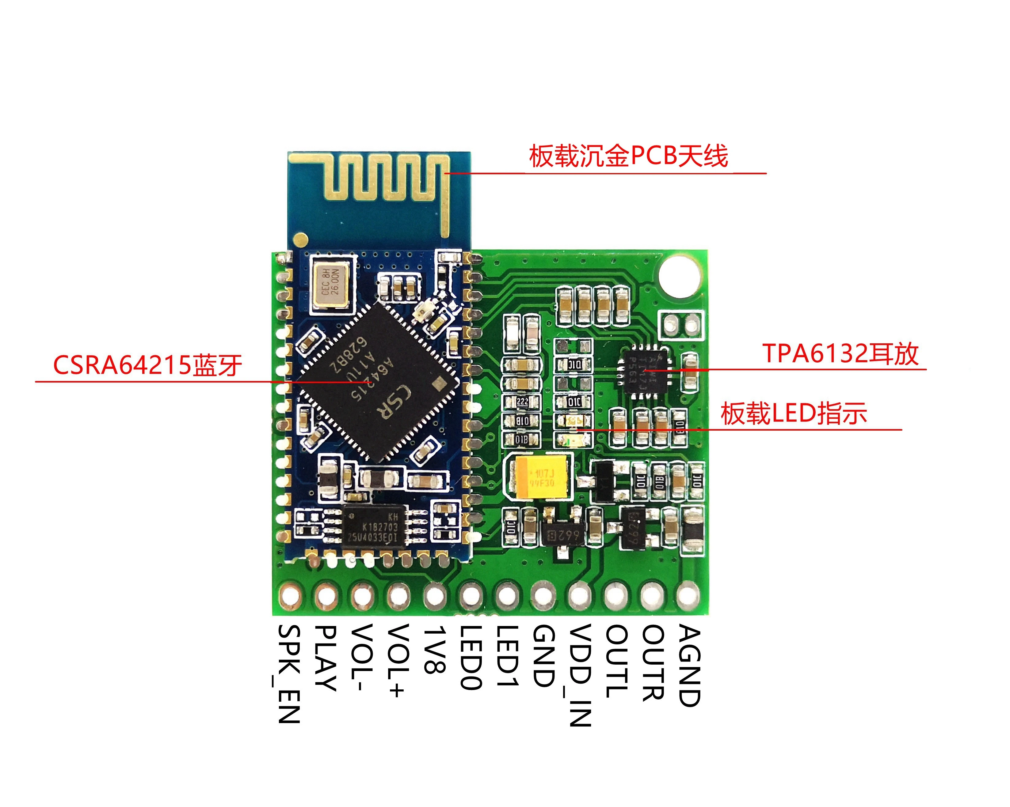 1. Использование Bluetooth модуля CSRA64215/QCC3008, передача стерео аудио, поддержка Bluetooth 4,2/5,0.