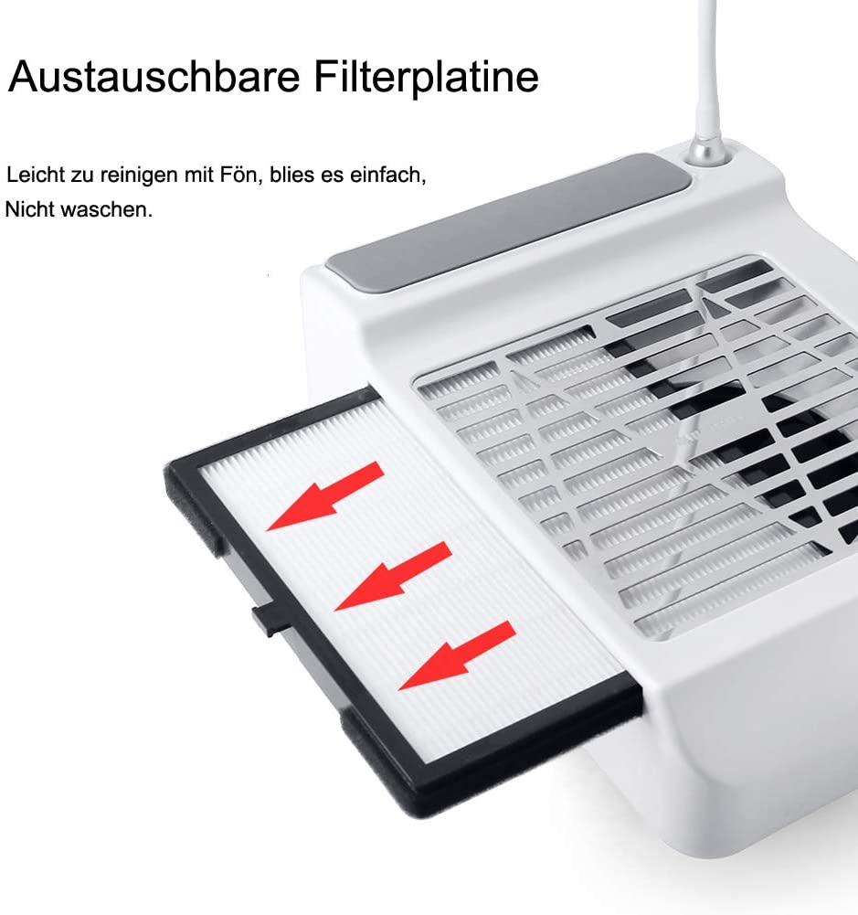 5. Чистый и здоровый: Этот вакуумный пылесборник для ногтей обеспечивает большое всасывание пыли для ногтевых процедур, таких как акриловые ногти, порошковые диски, маникюрные, Гелевые и ногтевые процедуры. Предотвращает попадание пыли.