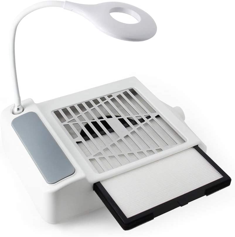 3. Пылеуловитель для маникюра: Изготовлен из высококачественной прочной нержавеющей стали, этот портативный пылеуловитель для ногтей работает в вакууме, вытягивая частицы пыли в Сменный фильтр. Всасывание можно регулировать, поворачивая ручку всасывания.