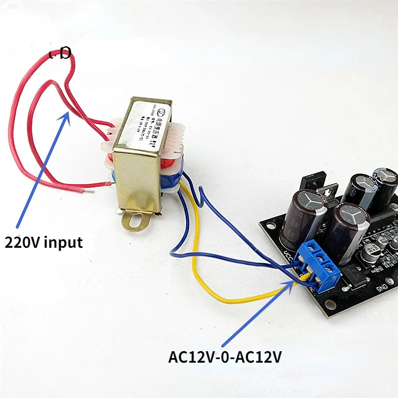 3: Плата усилителя + силовой трансформатор + 2 гнезда лотоса с 300 мм экранированным проводом