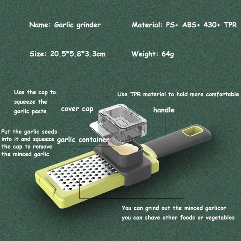 1. Быстро Измельчить чеснок: С помощью этого инструмента можно быстро Измельчить чеснок и имбирь, а также очистить другие продукты. Повысить эффективность приготовления пищи и сделать блюда более вкусными.