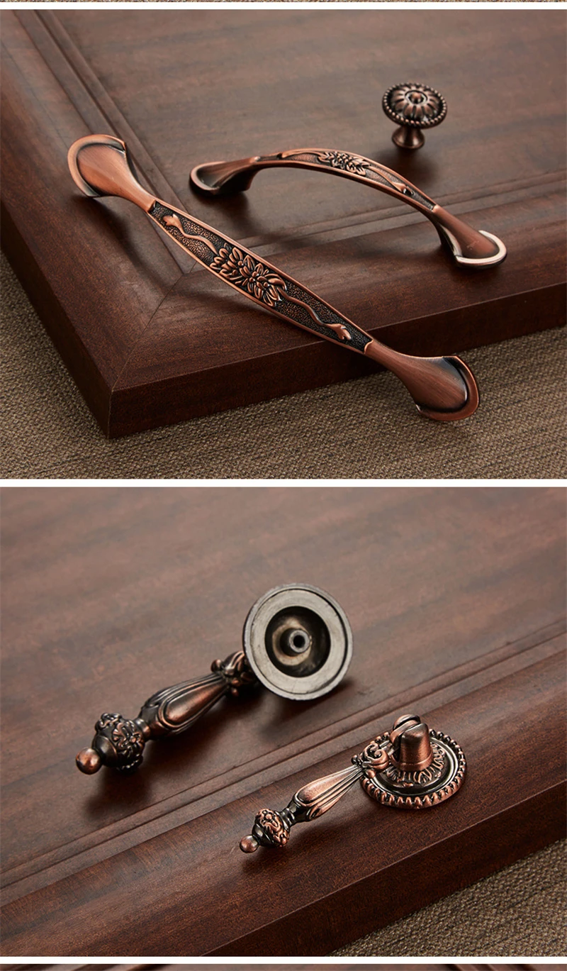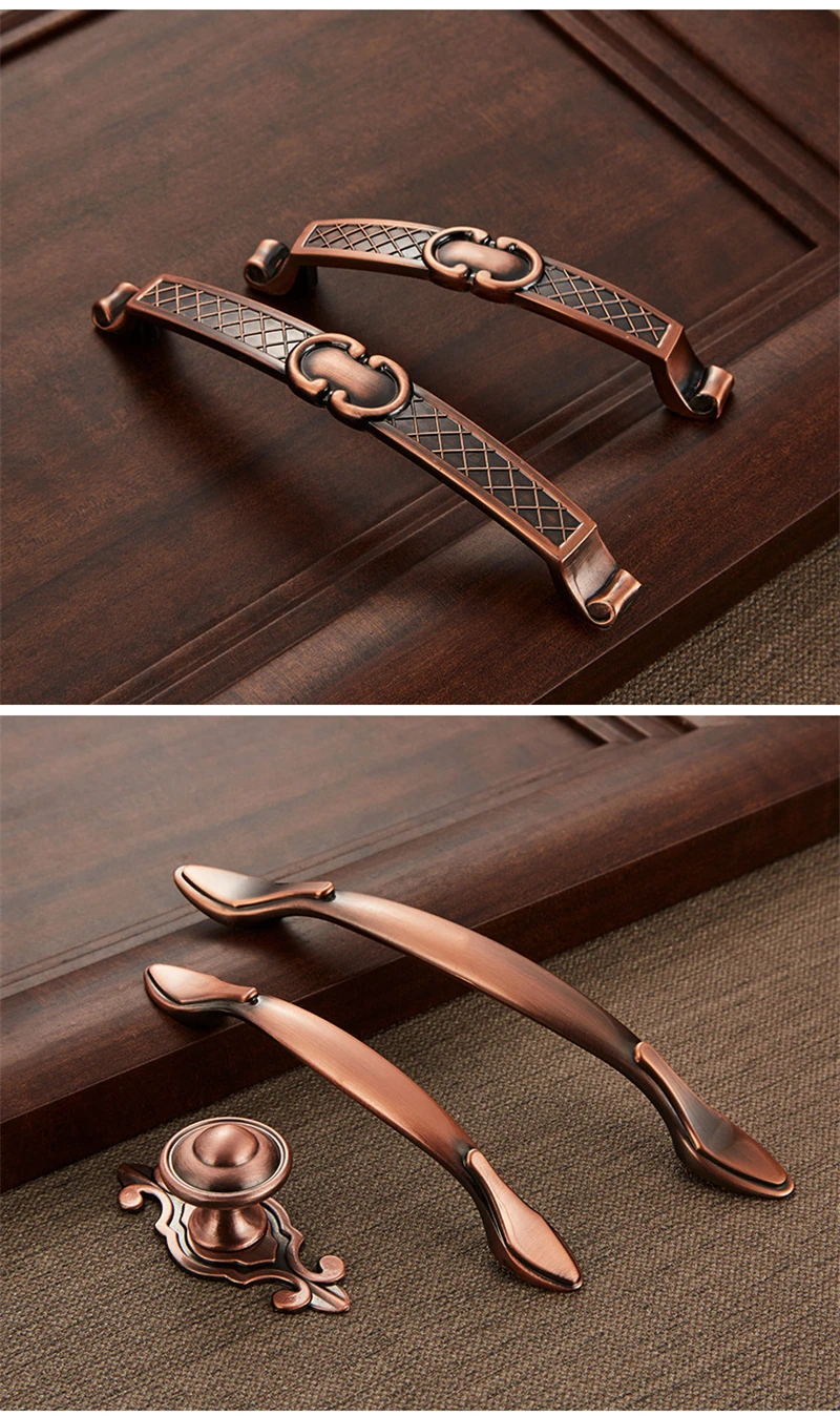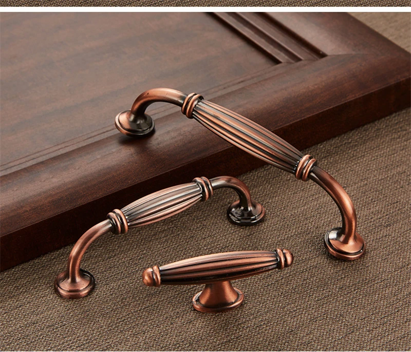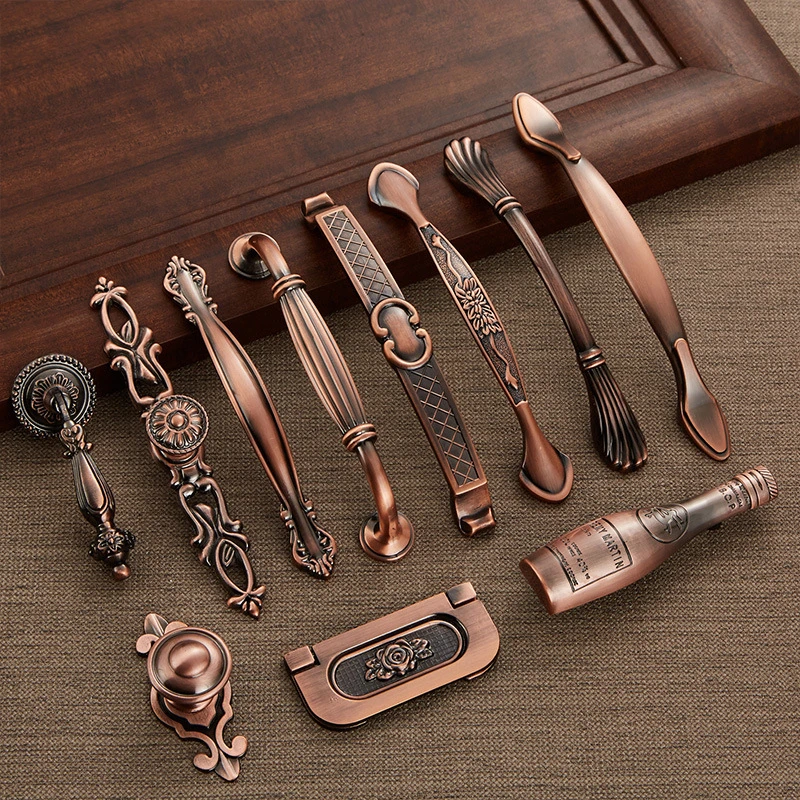 Античный цинковый сплав, европейский стиль, красная бронзовая ручка, винный шкаф, обувной шкаф, дверной ящик, Мебельная ручка