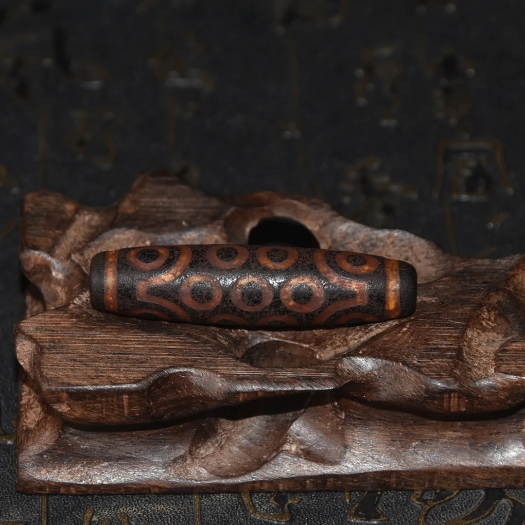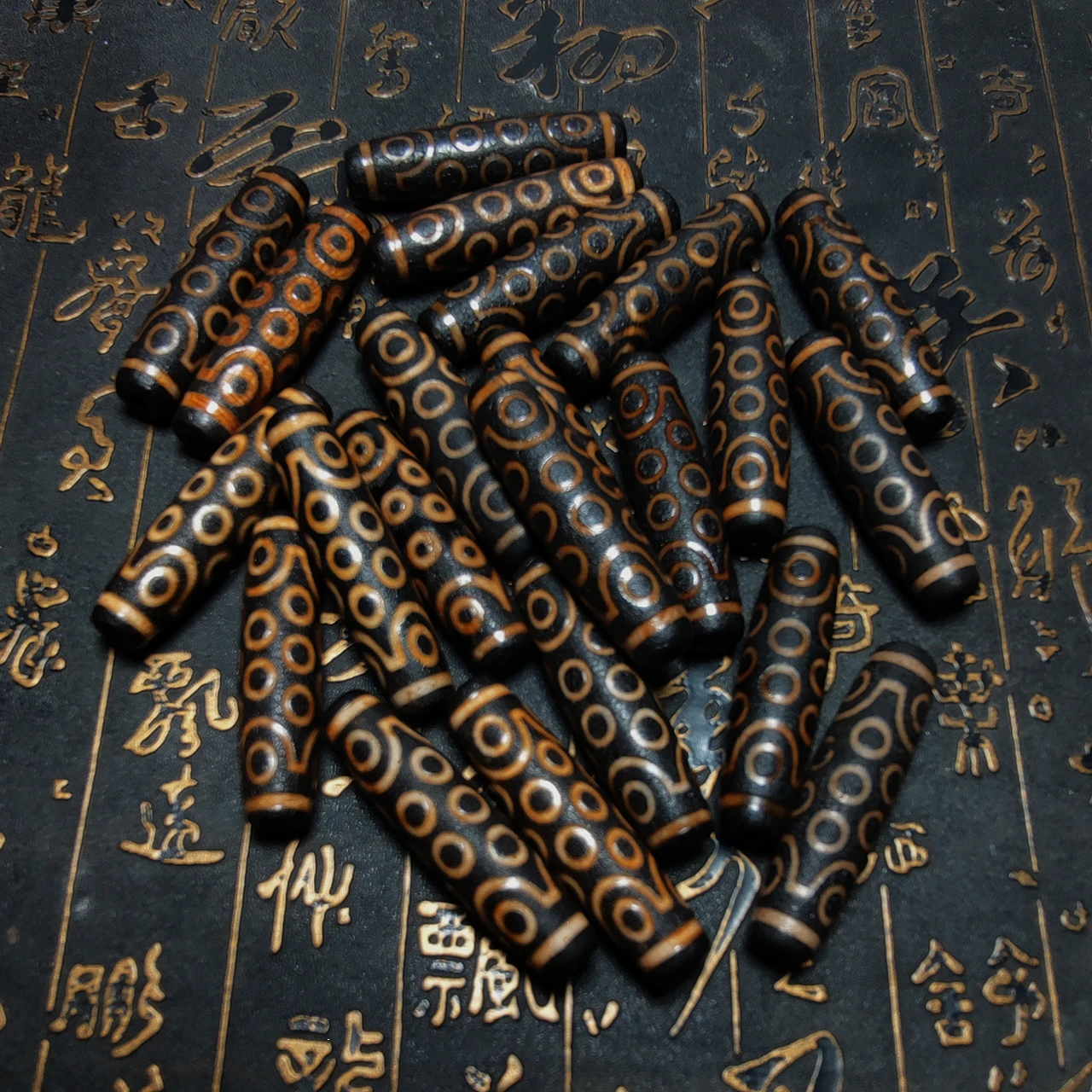 Тибет фэн шуй 21 глаза тотемный Агат Дзи 14*56 мм бордовые линии инкрустированные старыми черными бусинами мужские и женские ювелирные изделия ожерелье DIY Бесплатная доставка