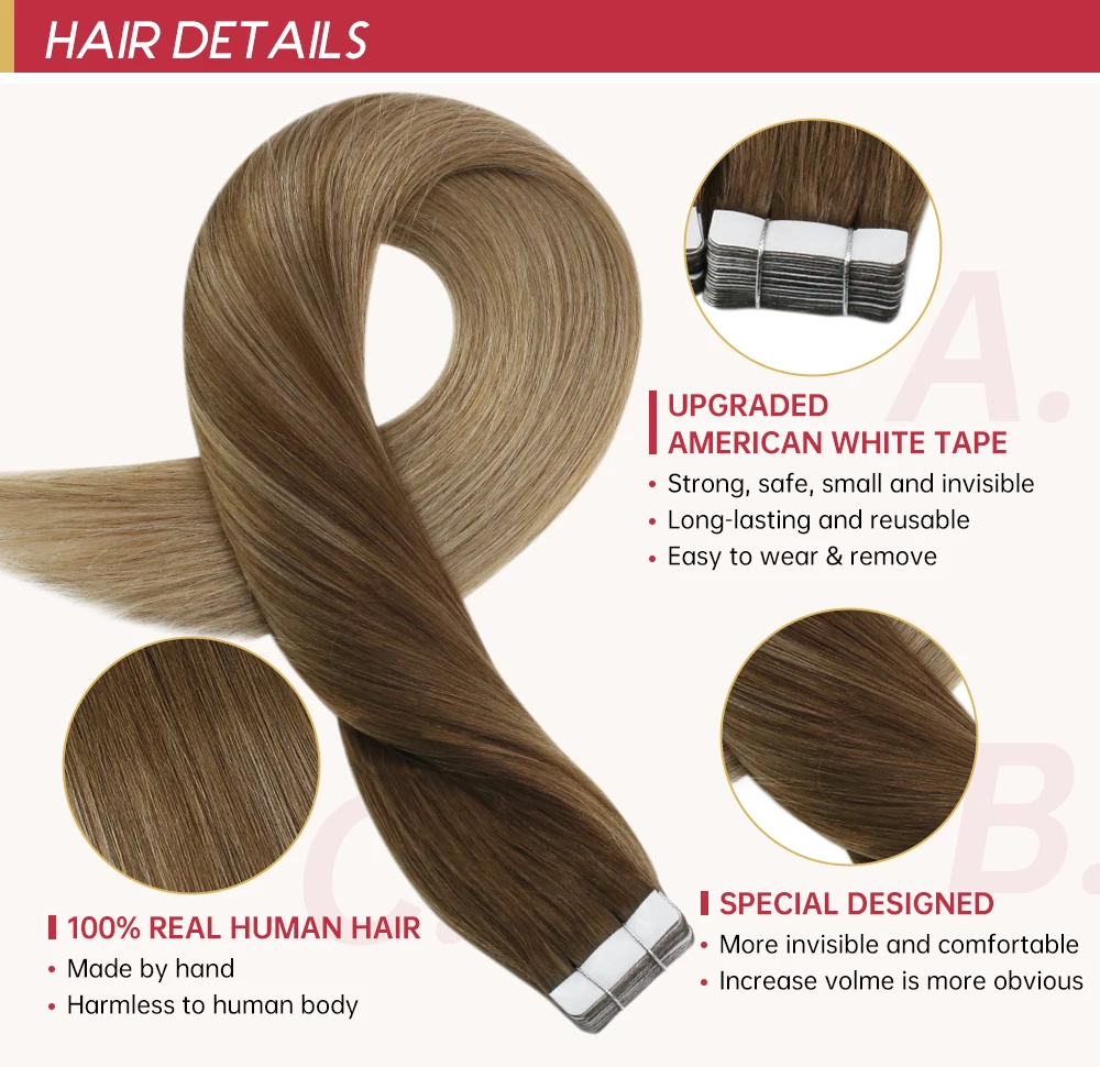 A:Лента для наращивания волос Moresoo использует самую прочную белую ленту. И это безопасная и удобная лента. Лента для наращивания волос является самым популярным способом в салонах. Наращивание волос на ленте является 100% натуральным и не требует никаких инструментов или химических веществ. Для нанесения всей головки с нулевым повреждением требуется менее часа.