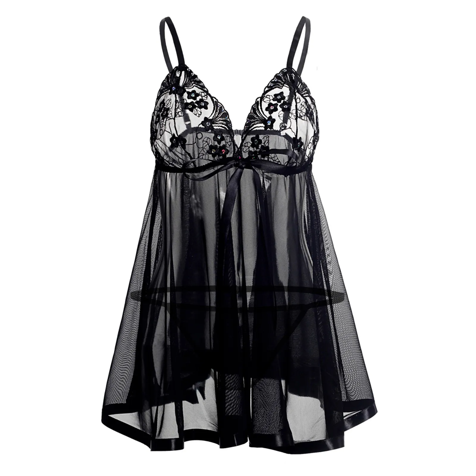 Размера плюс Сексуальное белье кружевная ночная рубашка с бантом женская ночная сорочка на бретелях с V-образным вырезом Сексуальная Ночная сорочка с прозрачным кружевом ночная рубашка 6XL