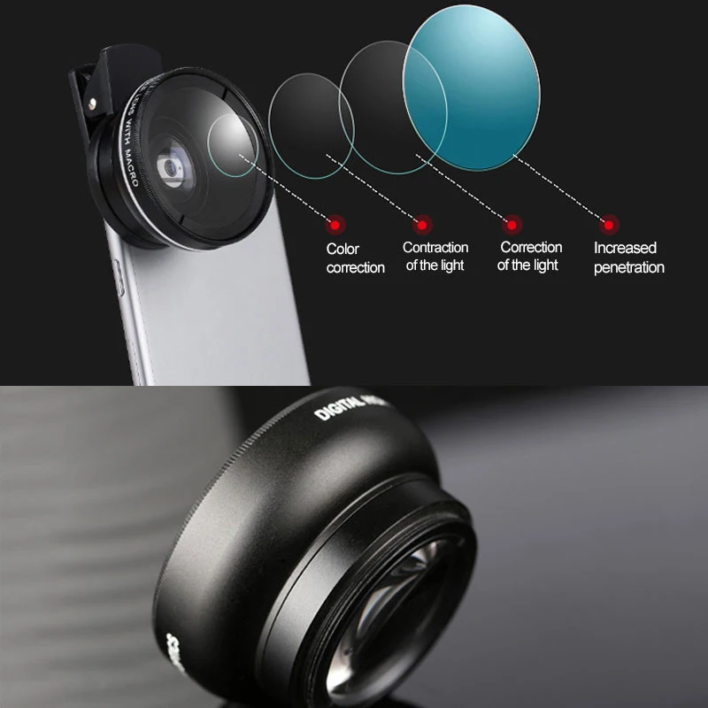 1 * объектив для телефона (0.45X широкоугольный 49mmUV + микро объектив)