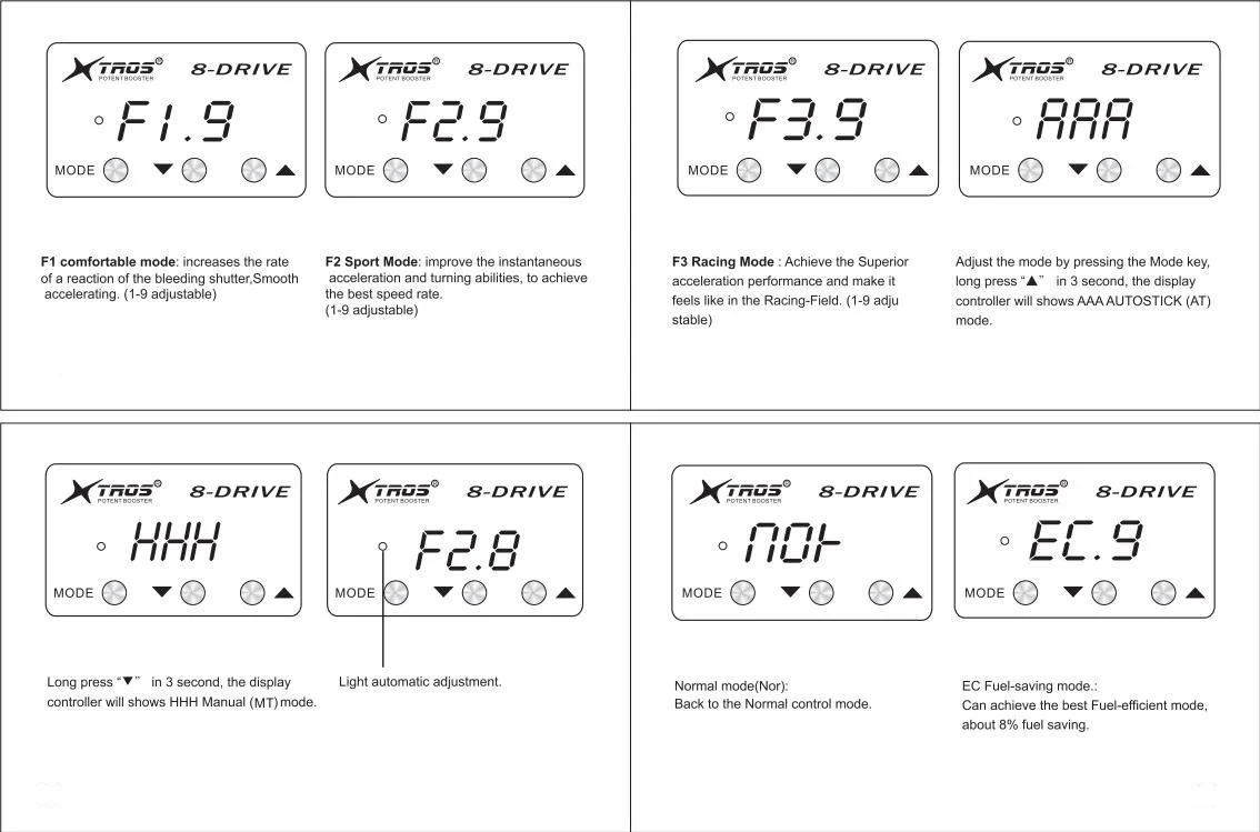 F1 comfortable mode > > > F2 Sport Mode > > > F3 Racing Mode > > > Original Mode > > > EC Fuel-saving mode.